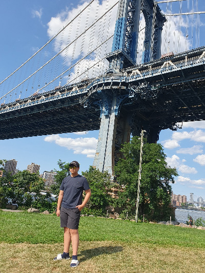 중2아들과 사진도 찍고 다리 위 노상에서 파는 물도 사 마시면서 워킹투어에서 들었던 많은 이야기들을 나누면서 걸었다. 무엇보다 브루클린 브릿지를 걸으며 찍은 사진들은 중2아들의 인생 사진이 남아 있다.