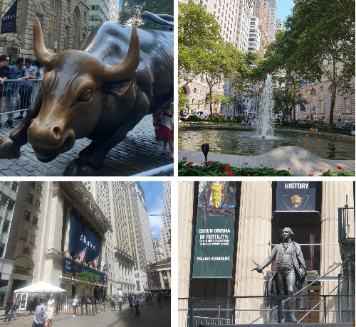 뉴욕증권거래소(New York Stock Exchange)는 우리가 간 날에 한 회사가 처음 상장을 한 날이라 미국국기가 아닌 그 회사의 로고가 걸려있어 아쉬웠고,패더럴 홀 국립기념관(Federal Hall National Memorial)은 공사 중이라 아쉬웠다.