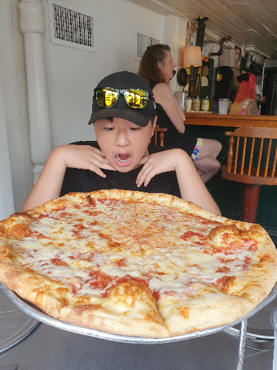 항구를 걸으며 기념품샵을 구경하고 쇼핑을 즐기는 엄마들과 다르게 더운 날씨에 점점 지쳐 가는 아들들을 위해 유명한 피자집에 들어갔다.