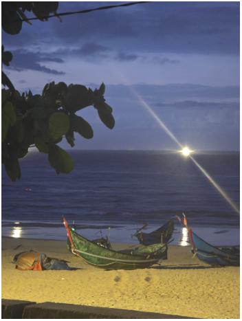 조용한 파도와, 이제 막 물기를 걷어낸 모래의 온기, 그리고 저 멀리 수평선 위에서 반짝이는 하나의 빛.