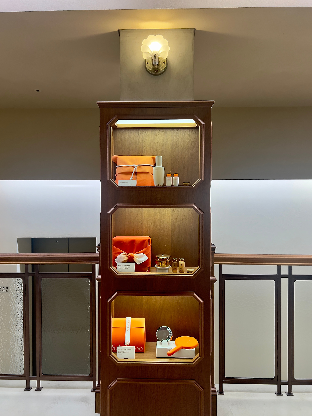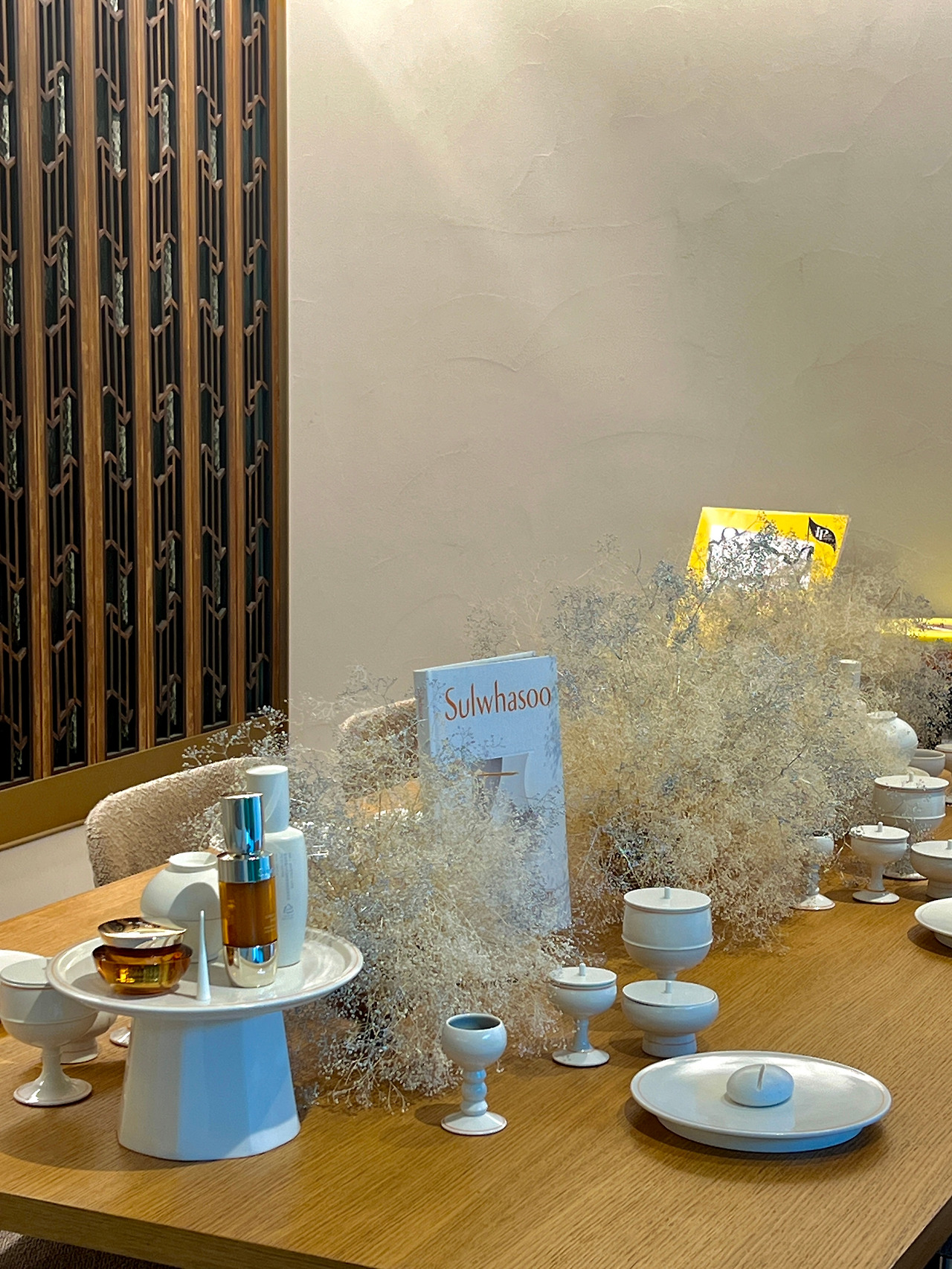 오설록 티하우스 북촌점과 설화수의 집은 공통적으로 금속 활자, 원목과 도자기 인테리어를 활용하고 있었는데, 두 브랜드의 인테리어 지향점은 분명히 달랐지만 인테리어의 미묘한 통일성은 오설록에서부터 설화수로 이어지는 경험이 어색함 없이 흐르게 만들어줬다.