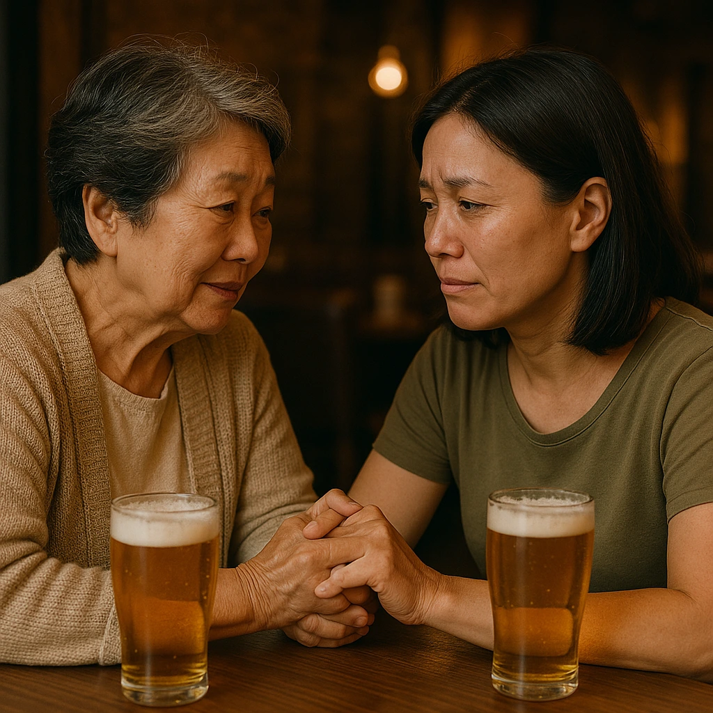 나는 엄마와 단둘이 맥주집에 앉았다.