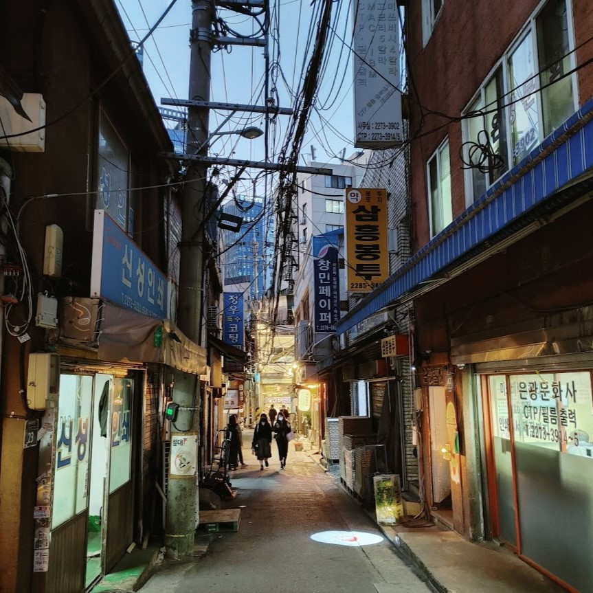 우리는 다시 또 다른 무리의 일본 관광객을 따라 걸었다. 그리고 우리는 또 다른 우연과 마주할 수 있었다. 이번에는 선배와 나의 대학 생활을 기억나게 하는 공통분모였다. 우리는 을지로의 골목을 향해 걸었는데 그곳은 우리가 대학시절 디자인 과제물을 만들기 위해 이곳의 인쇄소와 아크릴을 파는 가게들을 수시로 들락거렸었다. 오랜만에 다시 왔지만 다행히도 그곳은 옛모습을 그대로 간직하고 있었다. 이렇게 되니 과거를 회상하는 것을 넘어 즐거웠던 과거로 돌아간 것 같아 기분이 좋았다. 이번 여행에서 대학시절을 추억하거나 이곳이 옛날 그대로 있을 것이라고는 정말 상상도 하지 못했었다.