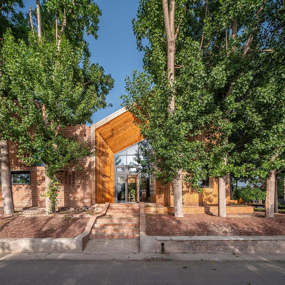 # 뾰쪽 지붕의 집과 높게 자란 포플러는 시골의 향수를 불러 일으킨다. 뾰쪽 지붕의 집은 우리가 다시 지을 수 있지만 높게 자란 포플러 나무는 한번 베어지면 다시 자라지 않는다. 포플러 나무를 베지 않고 원래 자리를 지킬 수 있게 하면 우리는 이곳에서 많은 것을 추억할 수 있게 된다. 그리고 포플러 나무 아래 뾰족 지붕의 집을 놓는 것으로 이곳의 향수를 오랫동안 지키고 키워갈 수가 있다. 현재의 자연을 그대로 두고 즐기는 것이 가장 아름다운 일일 것이다. 시골 주택과 같은 마당을 만들어 주변의 경관을 옛날 모습으로 보는 것도 좋은 방법일 것이다. 이곳의 경치를 조용하게 즐기는 것이 길게 가는 집의 모습이다. 아름다운 것을 오랫동안 기억하게 하는 것이 우리가 꿈꾸는 집인지도 모른다. 이렇게 포플러를 집 가까이 두고 볼 수 있다는 것은 분명 기분 좋은 일이다. @ 중국 제로하우스 by 텐니오 2021 (Zero House by Tenio)