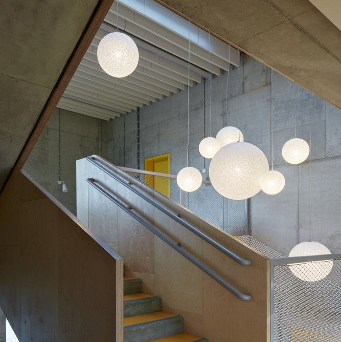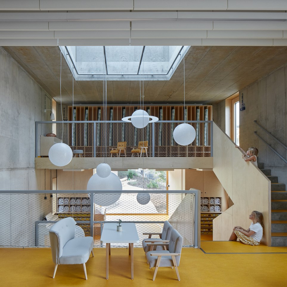 # 어렸을 때 유치원에서 보낸 시간은 우리의 기억에 깊이 박혀 있다. 유치원은 집 밖으로 나온 아이가 처음으로 혼자 살아가는 곳이다. 그리고 난생 처음으로 주변과 관계를 맺고 즐기는 장소이기도 하다. 처음이라는 것은 각자의 모습으로 세상을 대하게 한다. 이것은 내가 아닌 상대의 시각으로 세상을 바라보게 한다. 그리고 이렇게 바라보는 시각이 하나의 모토가 되어 성장한다. 우리는 각자의 다른 방식으로 자신을 만들어 간다. 각자가 좋아하는 행성이 다르듯 우리의 꿈 역시도 취향이 더해져 내 것이 되고 스스로 빛을 낼 수 있게 된다. @체코 야블로네츠나트니소우 몬테소리 유치원 by 몰크 아키텍쳐 +데이비드 아틀리에 2020 (Montessori Kindergarten Jablonec nad Nisou by Mjölk architekti + Projektovy atelier David)
