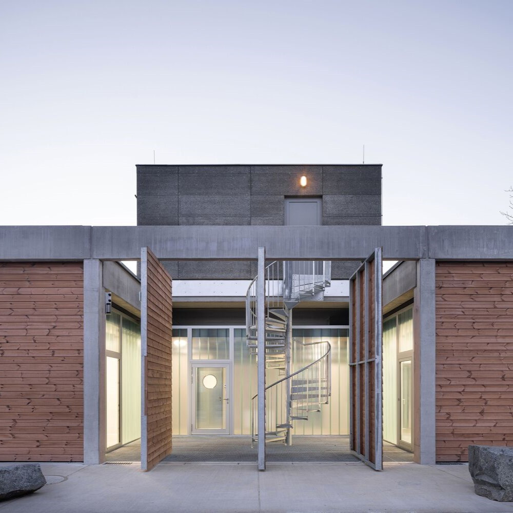# 균형 잡힌 건축이 되기 위해서는 기능성과 함께 실내 환경의 질이 무엇보다 중요하다. 우리는 집의 외관을 리듬감 있게 바꾸는 것으로 현재의 고정관념을 깰 수 있다. 정적이었던 벽면의 일부를 열고 닫는 것으로 변화와 역동성을 가질 수 있다. 건축은 사용하는 사람에게 영감을 줄 수 있어야 한다. 벽이 가림이나 막힘이 아닌 또 하나의 공간으로 존재할 수 있어야 하는 것이다. 벽이 열림으로써 바깥의 공간과 소통할 수 있어야 하고 공간이 움츠리지 않고 맘껏 넓게 기지개 펼칠 수 있어야 한다. @체코 리솔라제 테크니컬 서비스 센터 by 프로그레스 아치텍쳐 2022 (Technical Services Base Lysolaje by PROGRES ARCHITEKTI)
