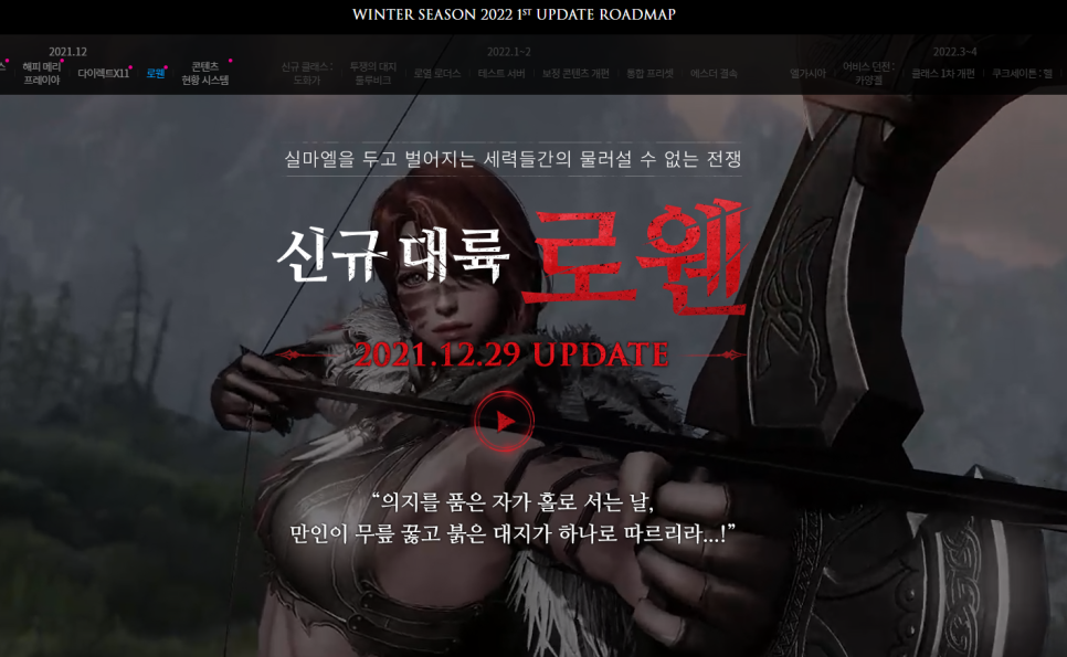 2021년 로아온 윈터에서 예고되었던 신대륙 '로웬'이 12월 29일부로 업데이트되었다. 로스트아크 최초의 RvR(Realem vs Realem, 진영 간 전투) 컨텐츠이자 2022년 새로운 한 해의 포문을 여는 업데이트로 소개되었으나, 2018년 시즌 1부터 지금까지 쭉 내놓은 자식이었던 PVP 컨텐츠가 로스트아크의 신규 대륙으로 출시되는 것에 유저들은 기대와 더불어 지울 수 없는 의구심을 품을 수밖에 없었다.