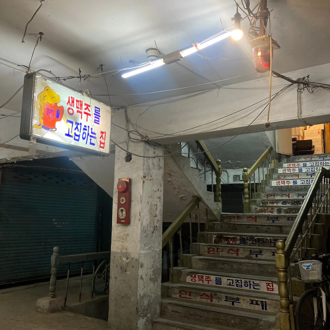 며칠 전 생맥주를 향한 고집이 가히 그로테스크한 공간에 다녀왔습니다. 공항시장 역에 위치한 '생맥주를 고집하는 집'입니다. (네이버 지도 등에는 '일번지호프'라고 검색해야 나와요!) 약간의 으스스함을 견디면 자부심 넘치게 맥주를 따르고 안주를 만드는 사장님과 그 자부심의 실체를 만나볼 수 있습니다. 통기타 음악은 아니지만, 세월이 느껴지는 bgm이 술맛을 더합니다. 자주 가셔서 낭만의 근원이 쉬이 사라지지 않게 도와주세요.