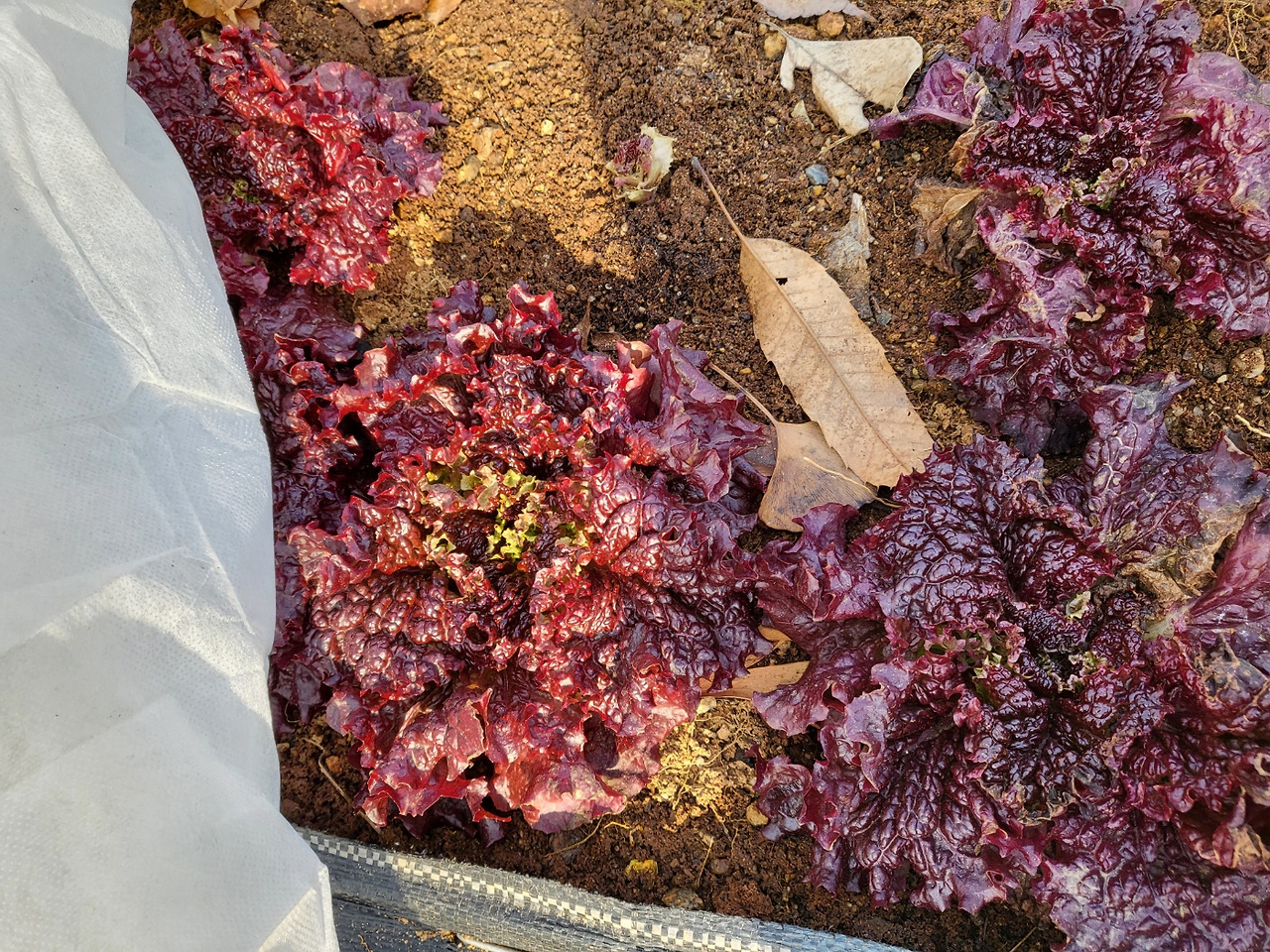 기온이 조금 내려가는 날은 하얀색 부직포 천이나 현수막(행사하고 남은 천)을 덮어 두었다. 그러던 중 갑작스레 대설이 내렸다. '아이고 늦게 심은 상추는 이제 다 죽었구나' 하고 마음 한편이 아렸다.