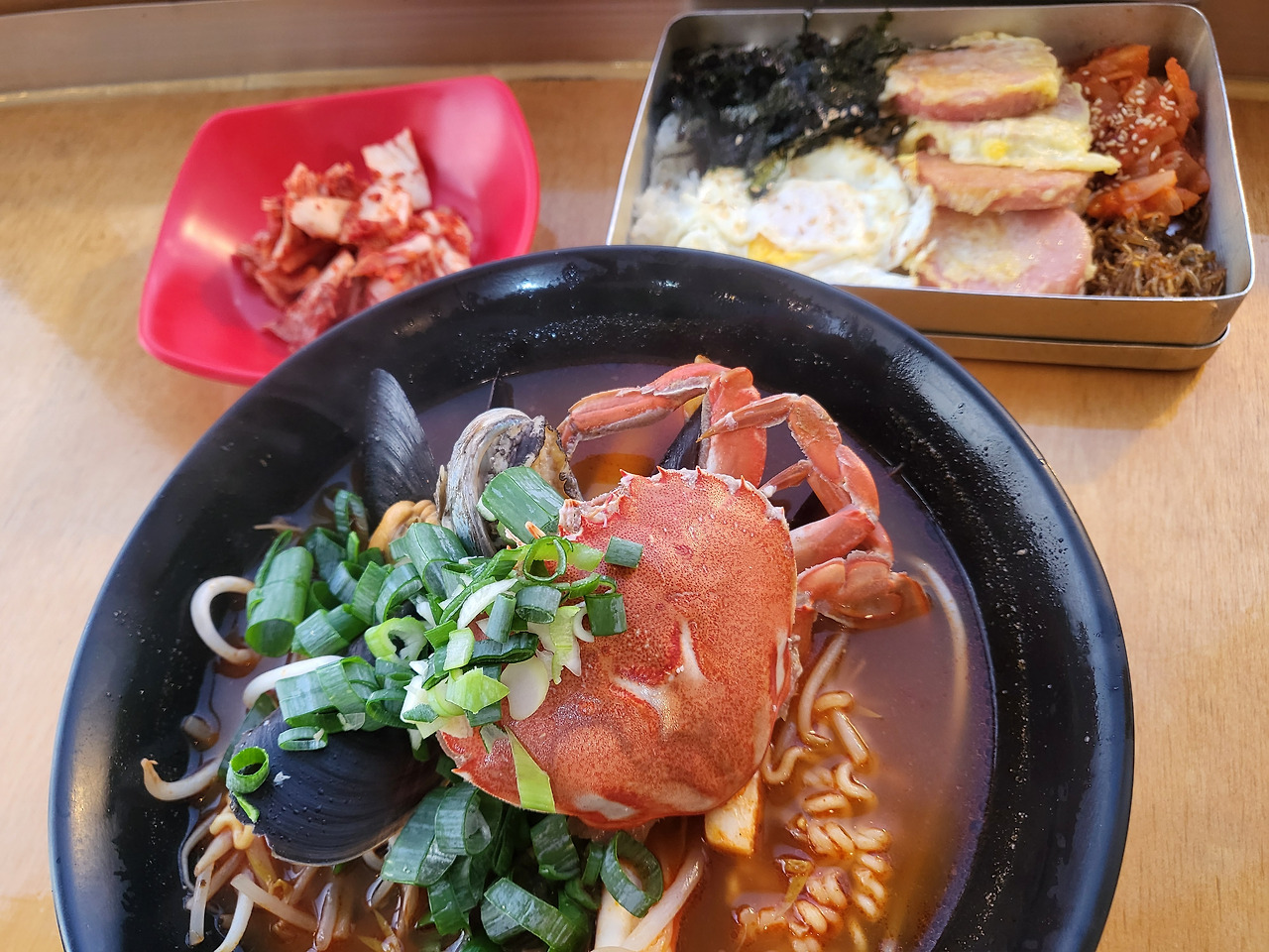 제주에 도착 후 여객터미널 어딘가에서 해물라면을 먹는다면 럭키비키다. 아님 말고