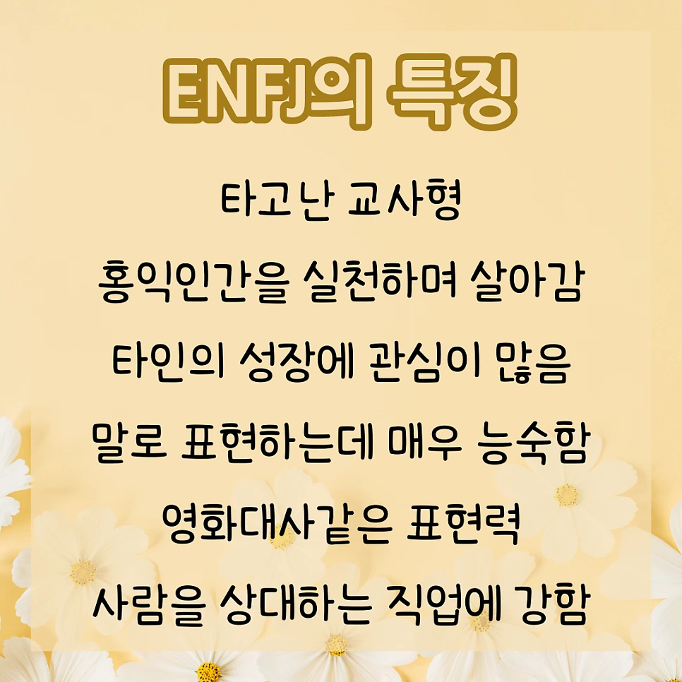 E : 에너지의 방향이 외부로 향해서 사람을 만나고 밖에서 행동하는 것을 좋아함
