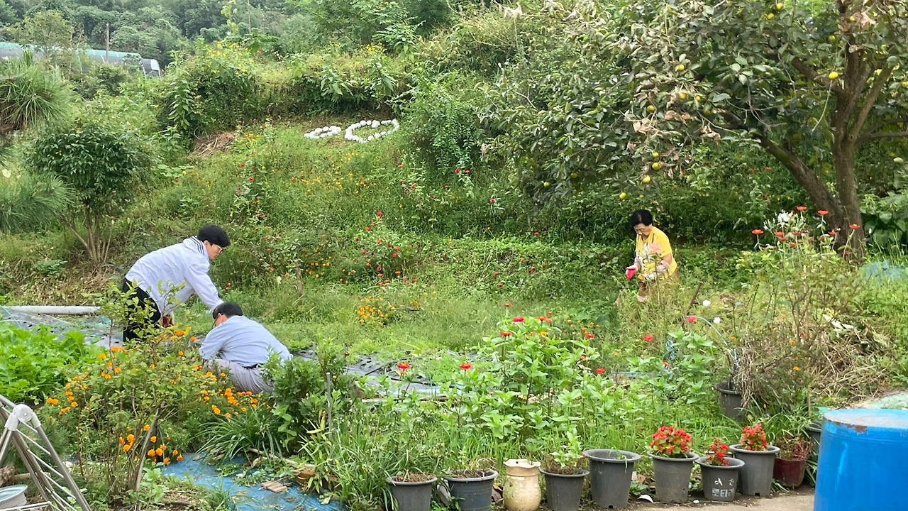 엄마의 지휘아래 아들과 남편의 텃밭정리가 시작됐다.