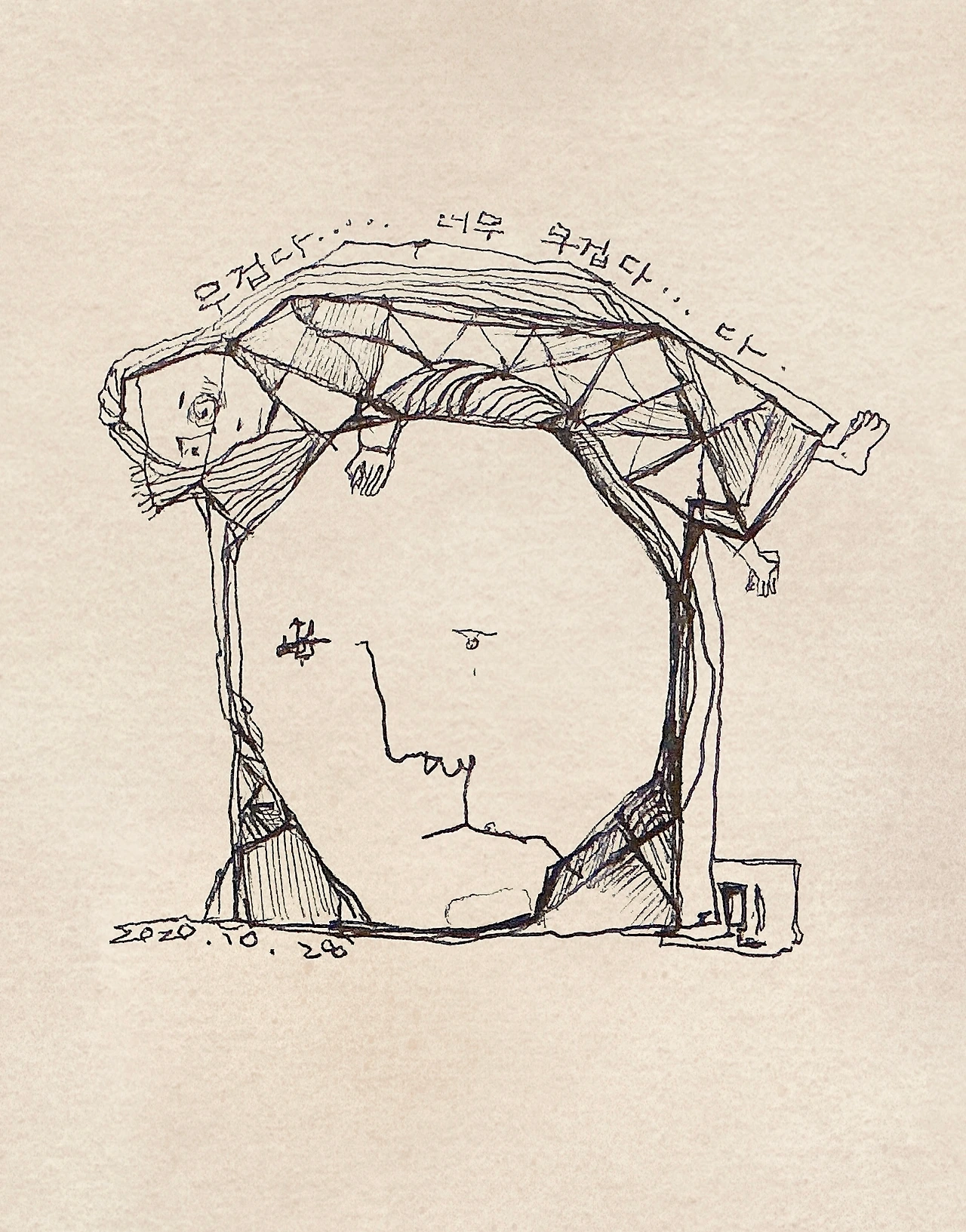 생각이 많다 못해 무거웠던 날이다. 사람 한 명이 꼭 내 머리 위에 올라가 있는 듯 그 무거움을 견디기 힘든 날이었다. 어떤 생각과 고민들로 이토록 무거웠는지는 기억할 수 없다. 지금은 알 수 없을 만큼 시간이 지나버렸고, 그때의 일을 기록해 놓지 않았기 때문이다. 지금으로부터 6년 전의 일이다. 그때 난 무엇을 하고 있었던 걸까? 드로잉 일기를 쓰다 보면 때때로 궁금해지는 순간들이 있다. 날짜가 기록된 그림하나는 꼭 한 조각만 남은 퍼즐 조각과도 닮아있기 때문이다.