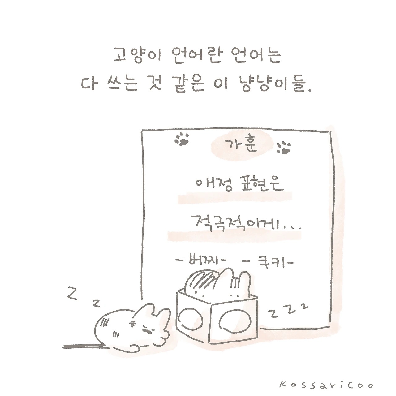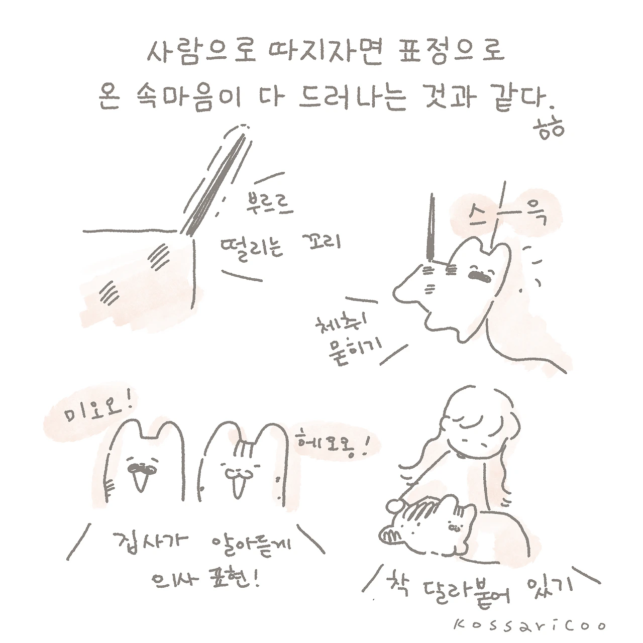 냥이와 집사의 포근한 동화 속으로 초대합니다.🌷 터키시 앙고라 단모인 찹쌀이, 러시안 블루 앙꼬, 코리안 숏헤어 고등어 쿠키. 길에서 만난 묘연으로 집사가 된 작가.