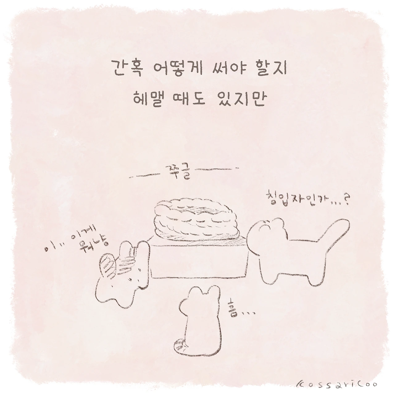 냥이와 집사의 포근한 동화 속으로 초대합니다.🌷 터키시 앙고라 단모인 찹쌀이, 러시안 블루 앙꼬, 코리안 숏헤어 고등어 쿠키. 길에서 만난 묘연으로 집사가 된 작가.