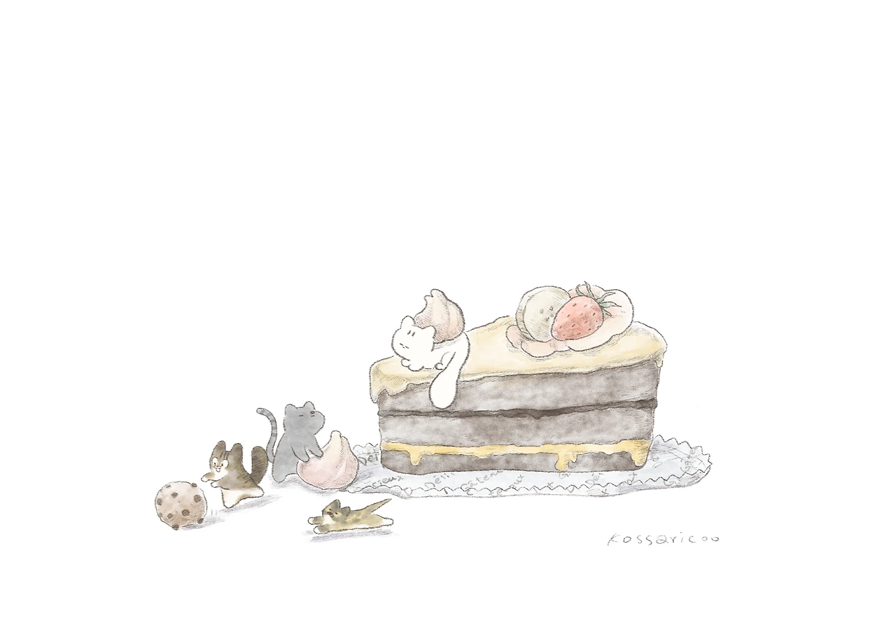 고양이들보다 훨씬 큰 디저트들이 가득.