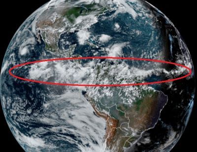 북쪽의 북동 무역풍(편동풍)과 남쪽의 남동 무역풍이 적도로 수렴하여 상승기류로 만들어진 구름 띠다. 적도수렴대 또는 열대수렴대라고 한다.