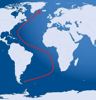 긴 여행에서 에너지를 아끼고자 북극과 남극을 오가며 특정한 지역에서 한 방향으로 부는 바람을 따라 날아다녔기 때문이다. 당연히 북극에서 남극으로 향할 때와 남극에서 북극으로 향할 때의 이동 경로가 달랐다.