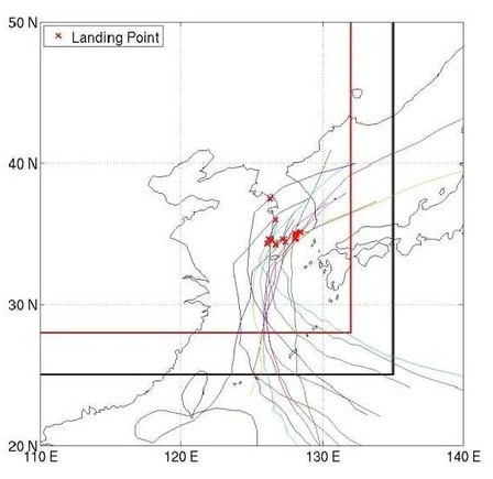 대부분 태풍의 진로가 오키나와 부근까지는 동쪽으로 향하다가 제주도 남쪽에서 급격하게 휘어져 서쪽으로 향한다. 이는 태풍이 편동풍 지대를 지나 편서풍 지대로 들어가면서 휘어진 것이다. 북극제비갈매기의 이동경로와 비슷한 경향을 보인다.