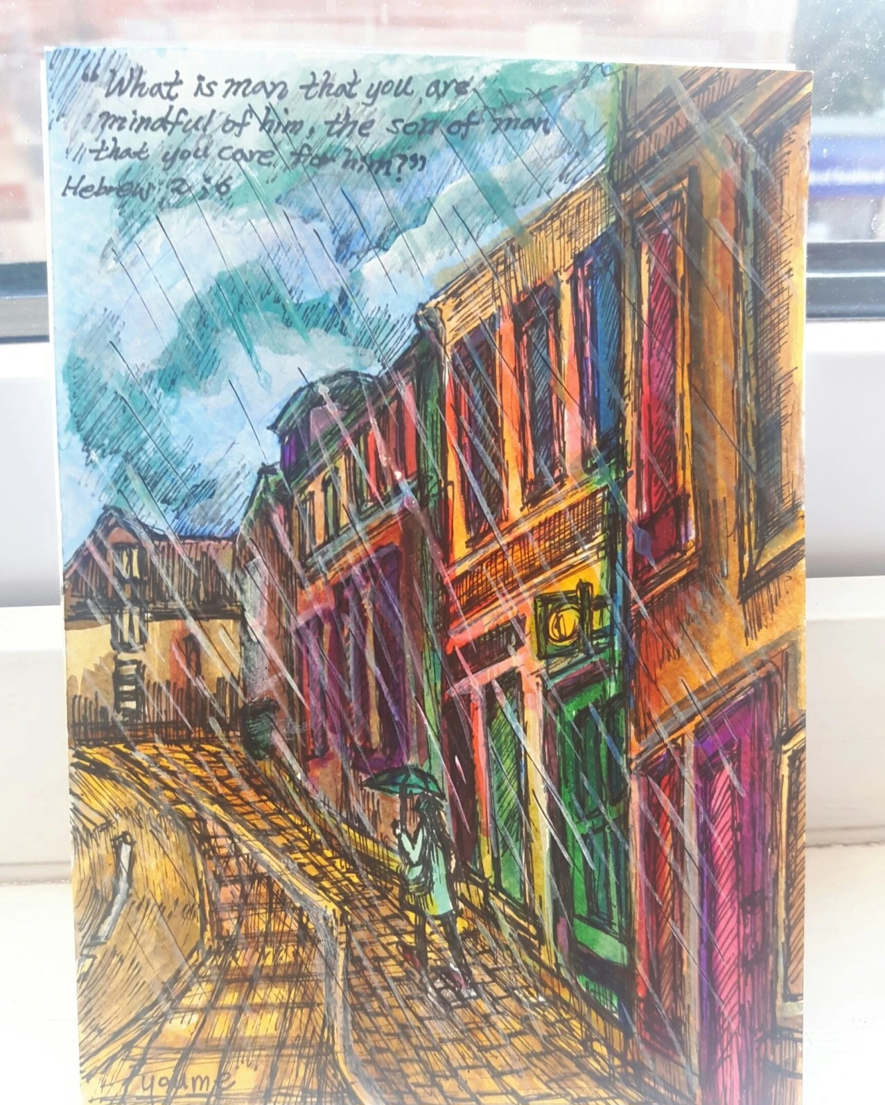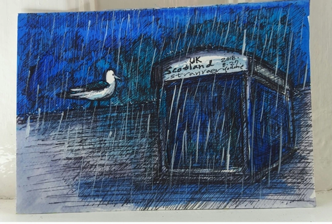 비 오는 그림을 그리고 비 내리는 창가에서 사진을 찍고 빗소리를 녹음하고 들어보며 아늑하고 푸근한 조명 꺼진 듯한 어슴푸레한 창밖이 나에겐 운치 있고 우산 쓰고 걷는 사람들도, 빗물 웅덩이에 비친 자동차 헤드 라이트의 불빛들도 모두 정겹고 따스하게 느껴져요.