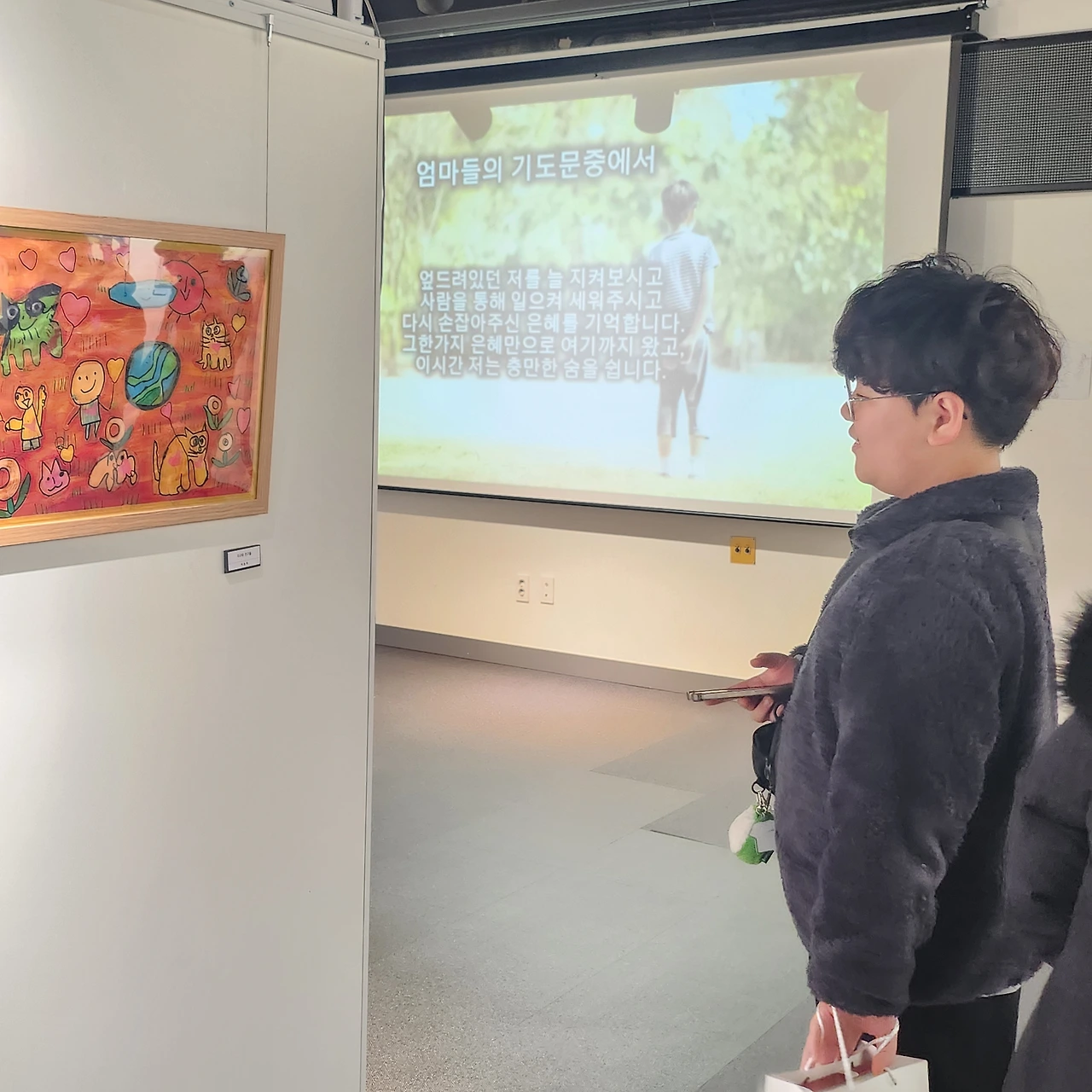 각기다른 어린작가들과 그들만의 색채가 가득한 그림이 다채로움속에서도 한호흡처럼 걸릴수 있었던 것은, 내아이와의 소통과 다른 어머니들과의 소통속에 들숨 날숨으로 함께 호흡하려 애썼던 어머니들의 성숙함이 들어있다. 서로를 격려하고 고마워하고 서로를 섬기는동안 전시는 열리고 또 마무리 되었다.