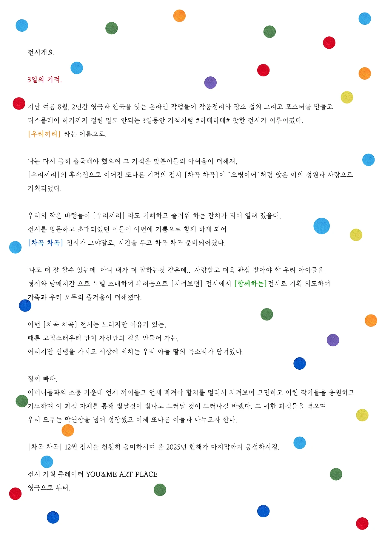 그들은 특별한 자녀를 두어서가 아니라 엄마로서 특별해질수밖에 없는 마음을 가졌기에 [전시]라는 것을 시작할 엄두를 낼 수 있었던 마음에서 출발된다.