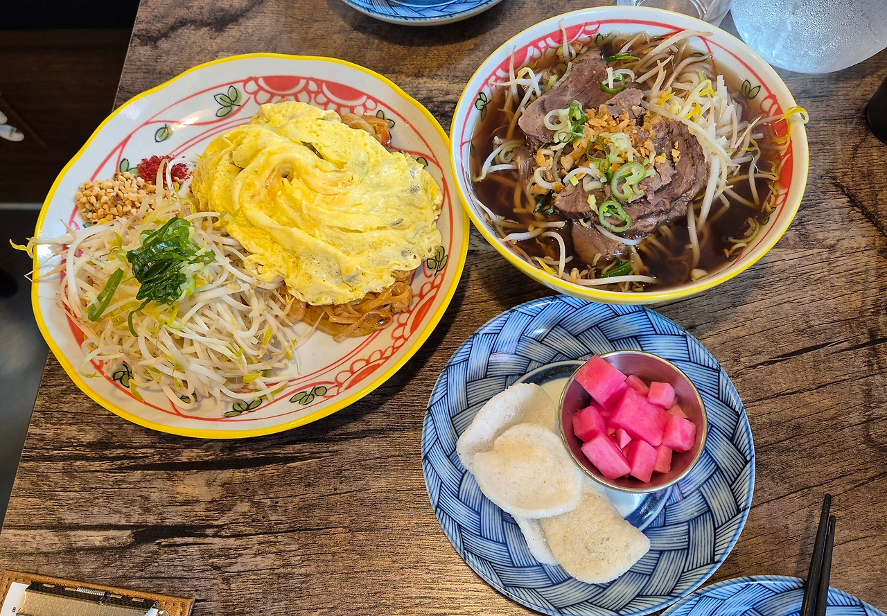 동남아 음식을 좋아하는 친구를 위해 성수동에서 동남아 음식점을 검색해 찾아간 곳이다. 우리는 거의 오픈 시간에 갔기 때문에 웨이팅 없이 바로 음식을 먹을 수 있었지만 계산하고 나올 때는 웨이팅이 있었던 것 같다. 우리는 팟타이와 쌀국수를 주문했는데 팟타이는, 중국집의 짜장면처럼 어딜 가나 기본은 다 하는 것 같고 쌀국수는 태국식이라 국물 색깔이 진하고 육수도 베트남식과 달랐다. 개인적으로는 베트남식 쌀국수의 뽀얀 국물이 담백하니 내 입에 더 잘 맞는 것 같다.