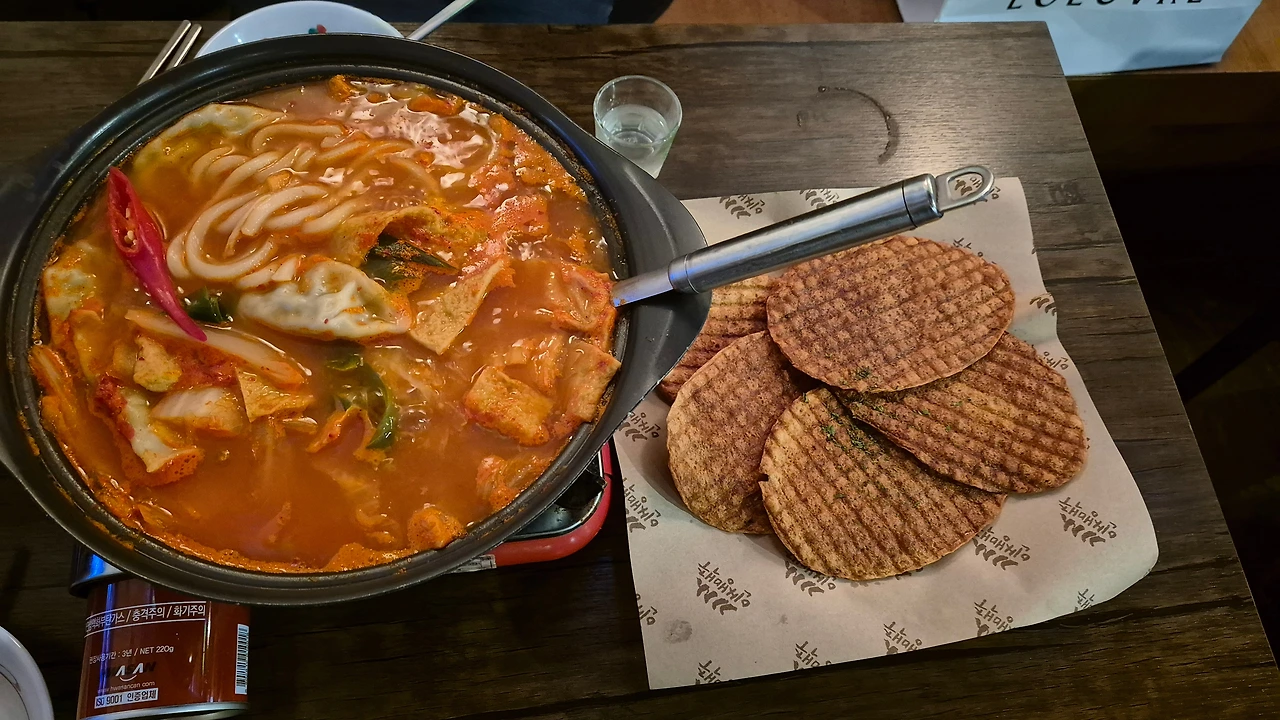 연극을 보고 대학로 근처 호프집으로 가서 김치우동에 튀김쥐포를 안주로 봉봉 소주를 마셨다. 지독한 알쓰인 내가 먹어도 거의 취기가 없는 음료에 가까운 소주였다. 저 전골 같은 김치우동이 만원 정도 했던 것 같은데 맛도 맛이지만 요즘 물가에 만원으로 둘이서 배를 채울 수 있음이 놀라웠다.