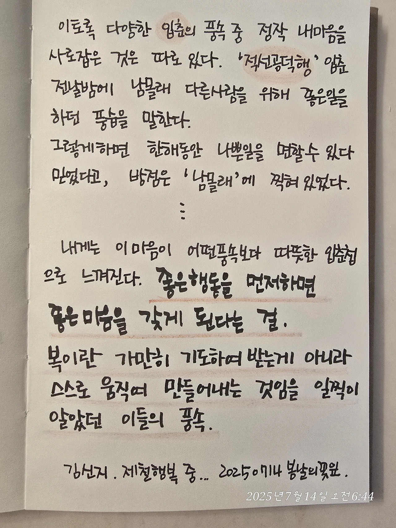 오늘, 입춘첩 대신 나의 마음에 작은 문장을 붙인다.