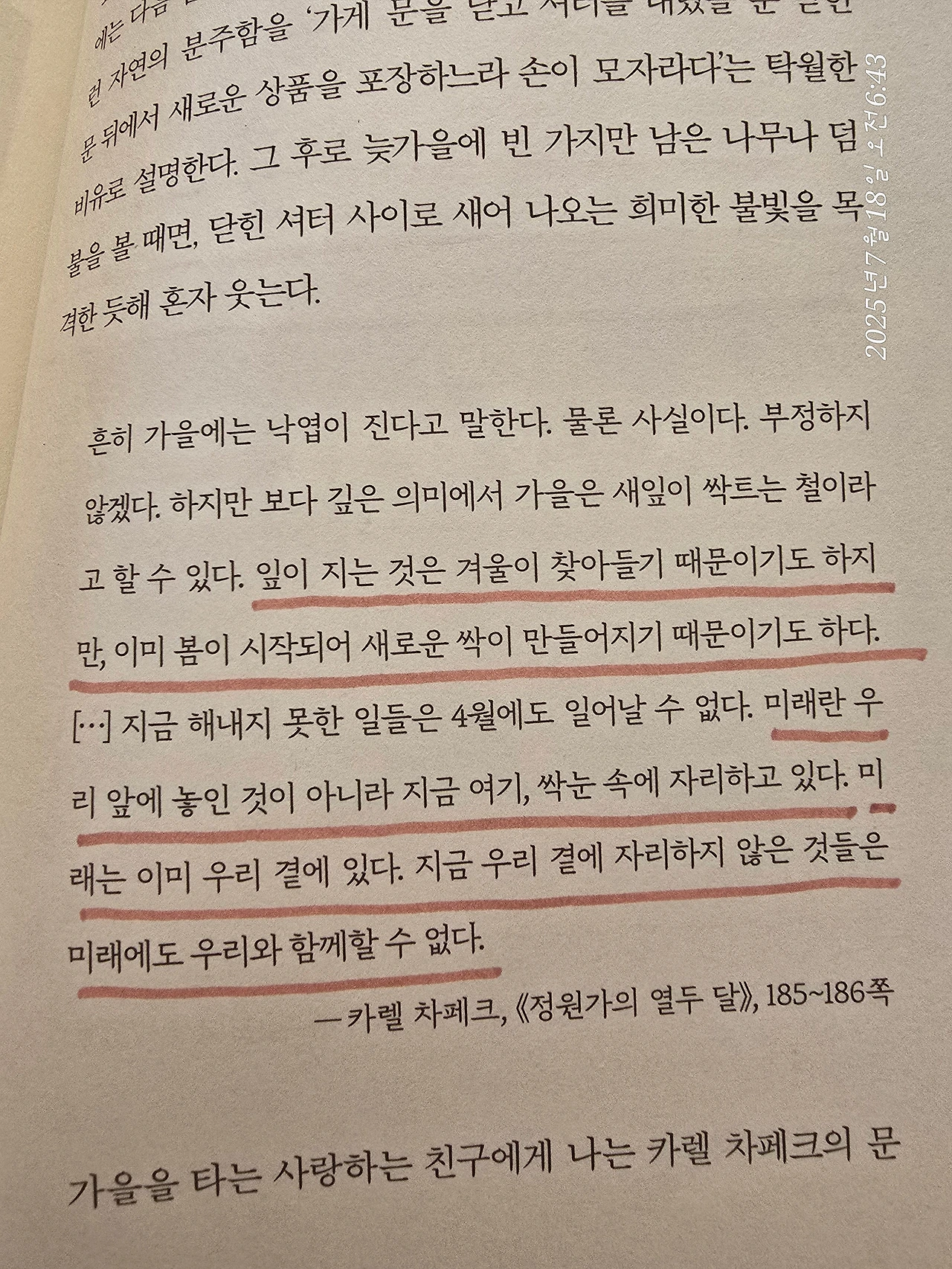 얼마 전, 그 친구에게 『제철 행복』 책을 선물 받았다.