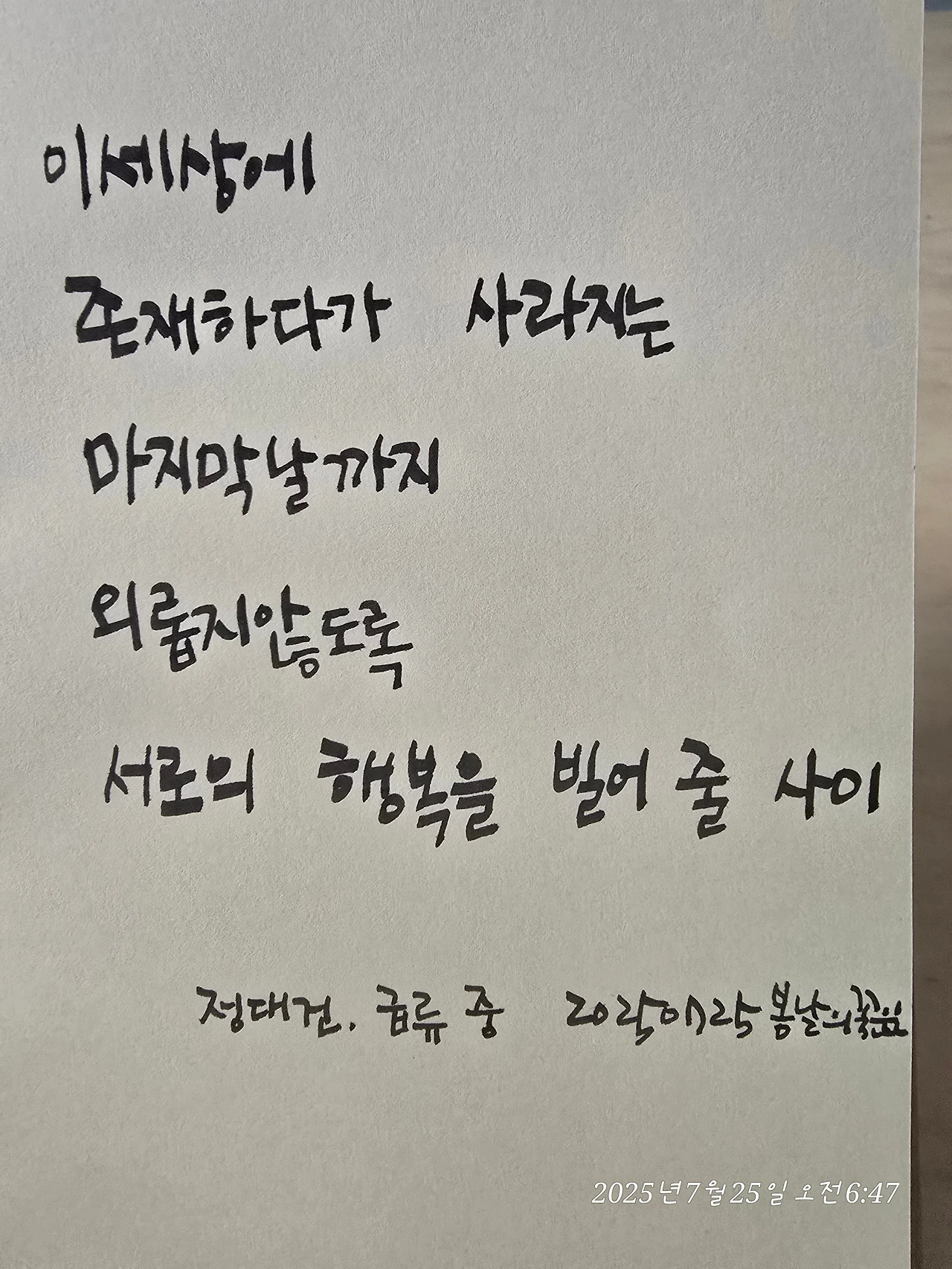 외롭지 않도록 서로의 행복을 빌어 줄 사이.”