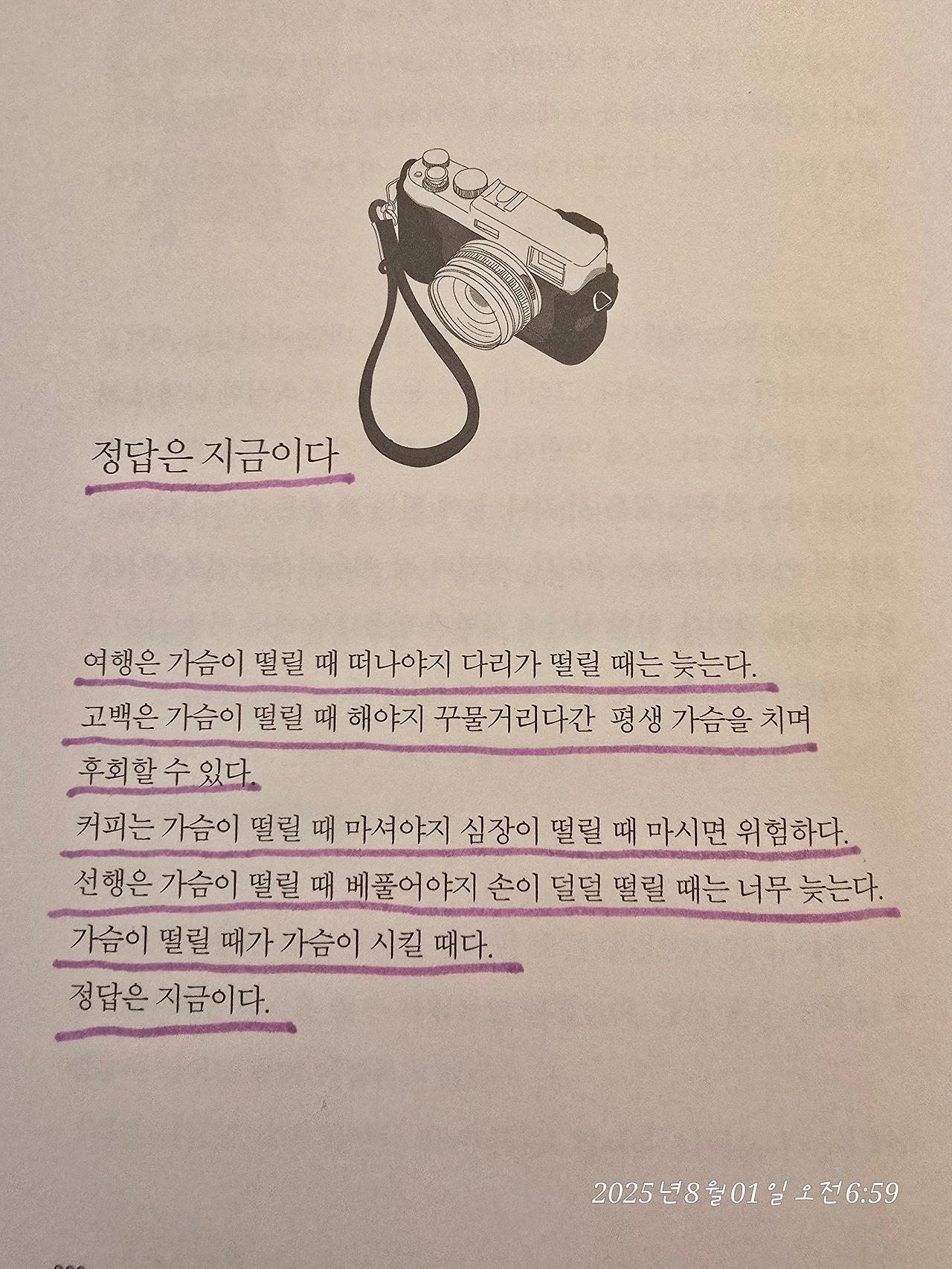 가슴이 뛰던 그 순간은 다시 돌아오지 않을지도 모른다.