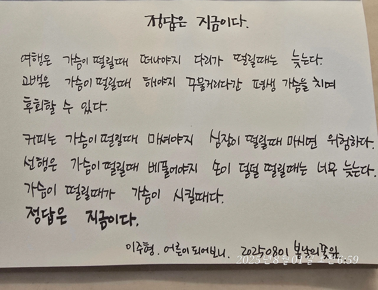 살다 보면 하고 싶은 일, 전하고 싶은 말을 자꾸 미룰 때가 있다.