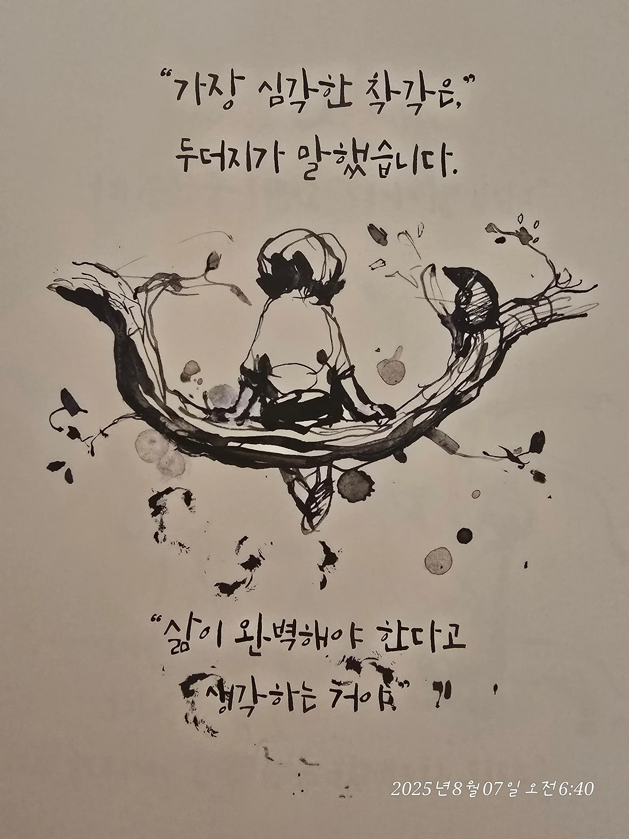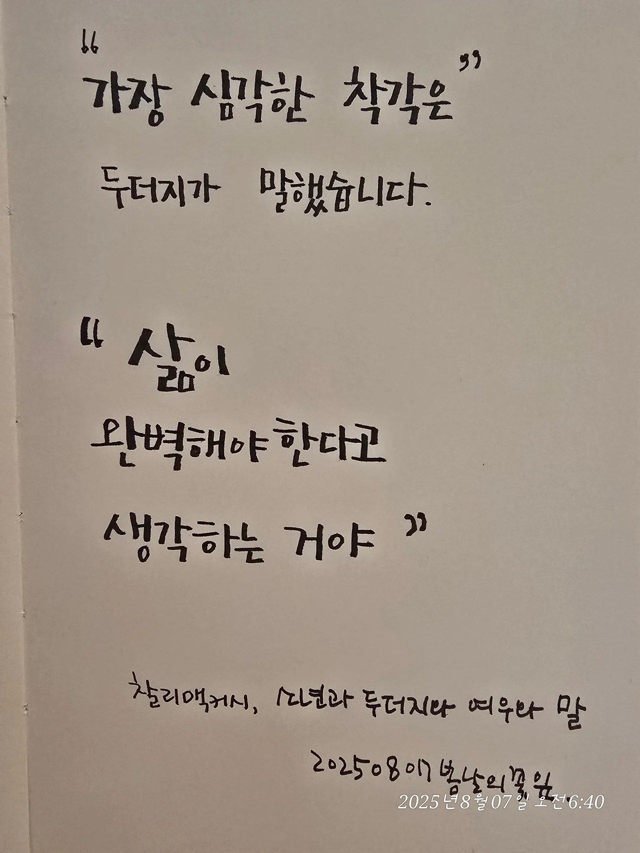 “가장 심각한 착각은 삶이 완벽해야 한다고 생각하는 거야.”