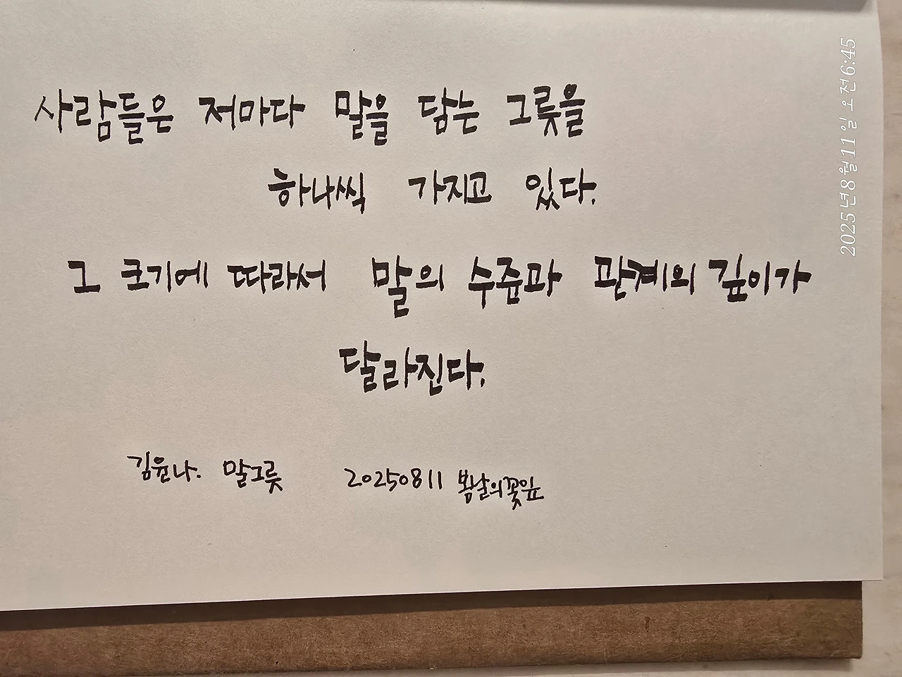 “사람들은 저마다 말을 담는 그릇을 하나씩 가지고 있다.