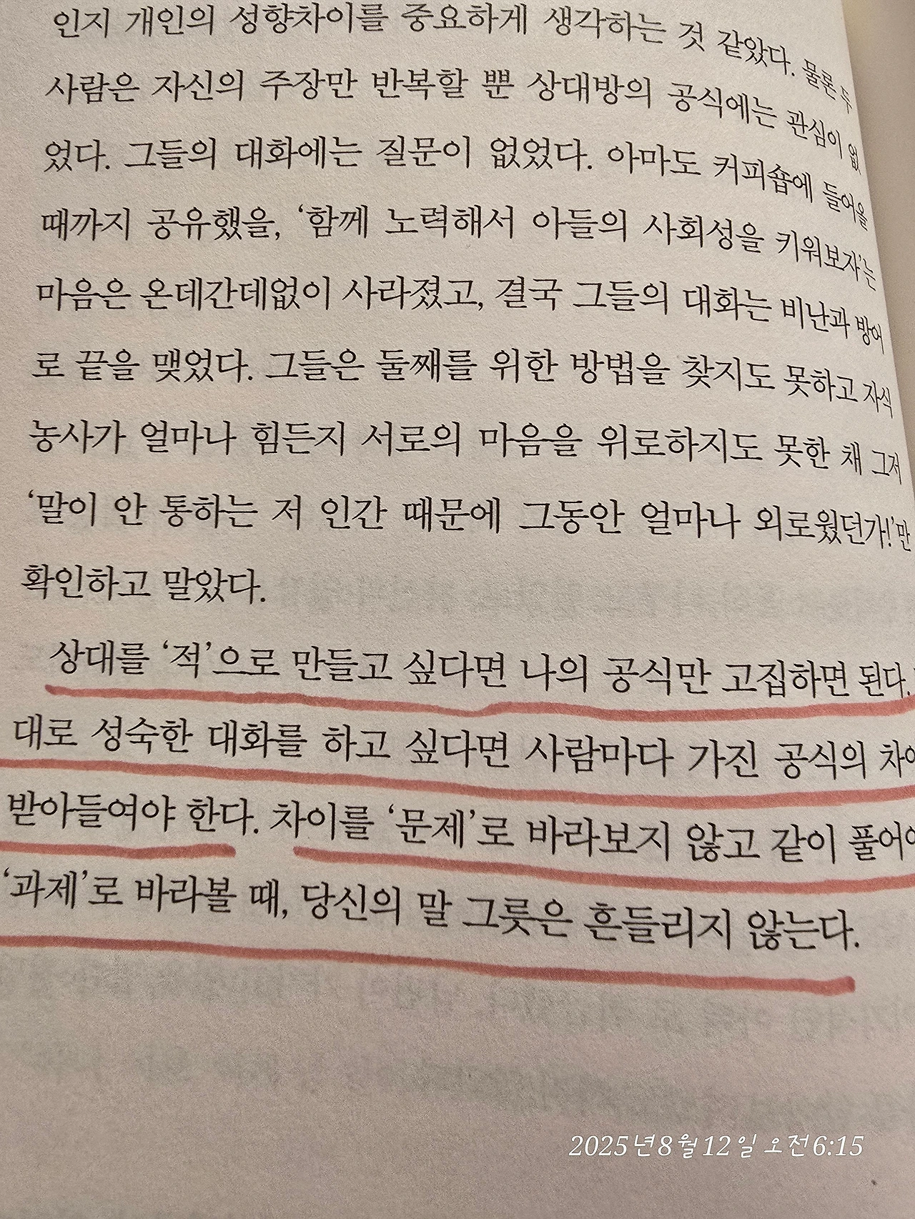 “성숙한 대화를 하고 싶다면 사람마다 가진 공식의 차이를 받아들여야 한다.