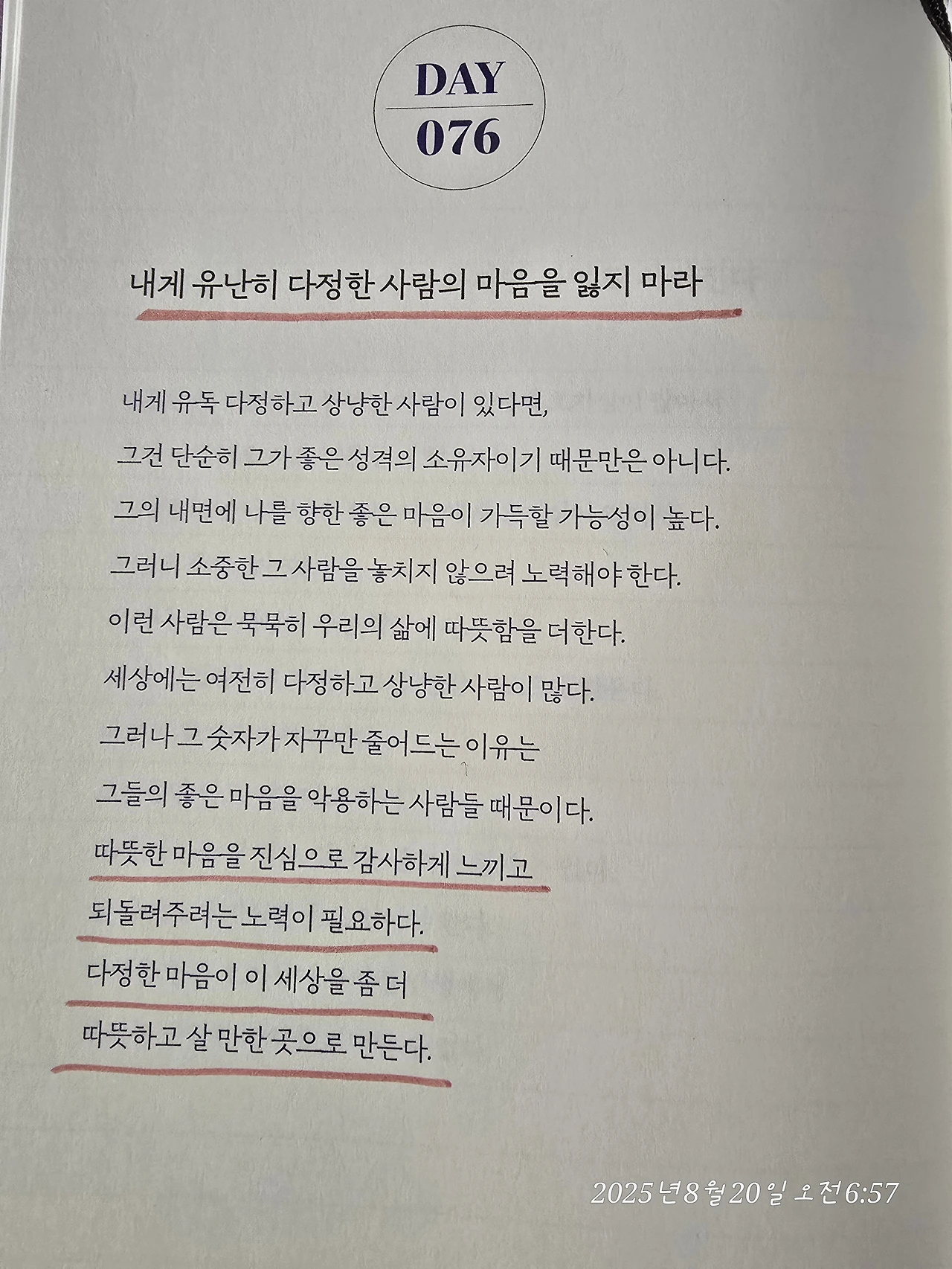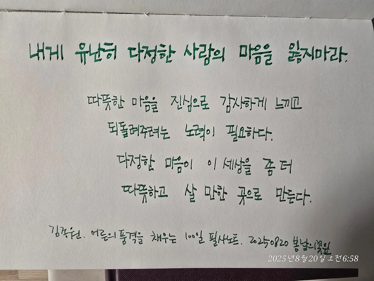 그래서 나는 다정한 마음을 흘려보내지 않고 지켜주는 사람이 되고 싶다.