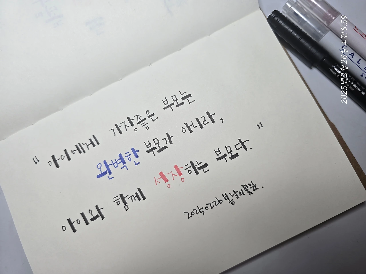 노트 위에 조용히 펜을 움직이며, 누군가의 따뜻한 문장을 따라 적는다.