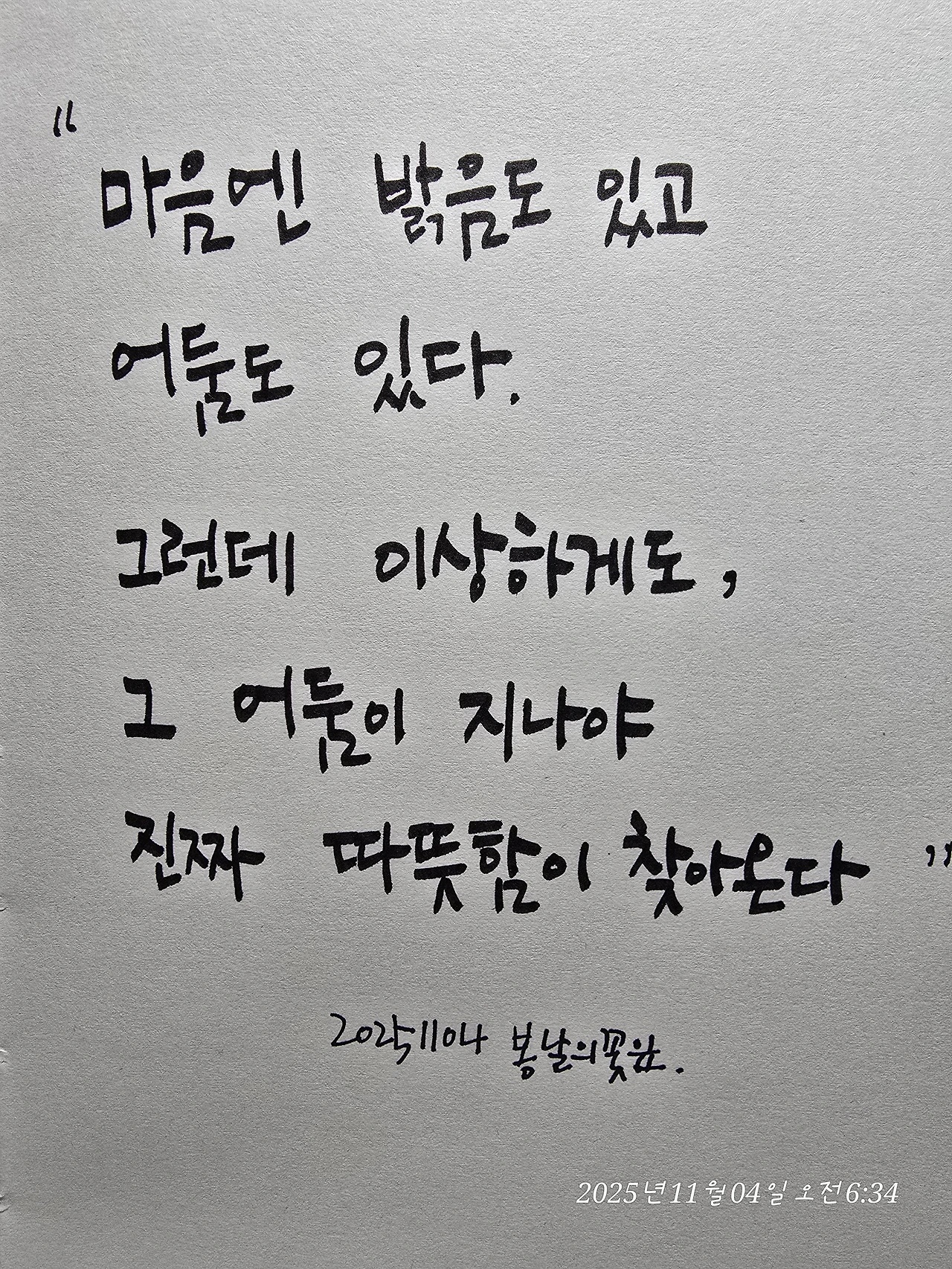 “마음엔 밝음도 있고 어둠도 있다. 그런데 이상하게도, 그 어둠이 지나야 진짜 따뜻함이 찾아온다.”