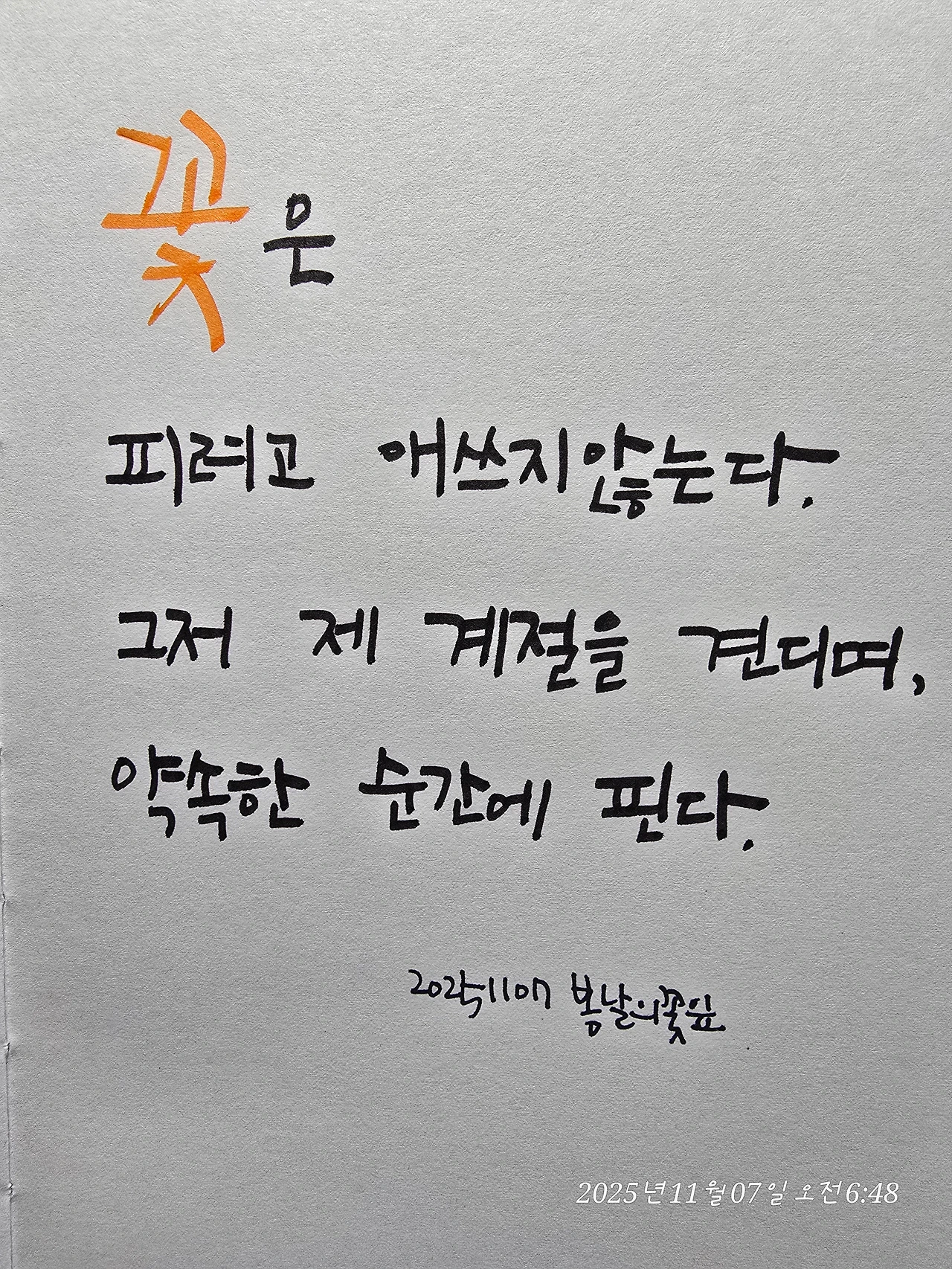 그저 제 계절을 견디며, 약속된 순간에 핀다.