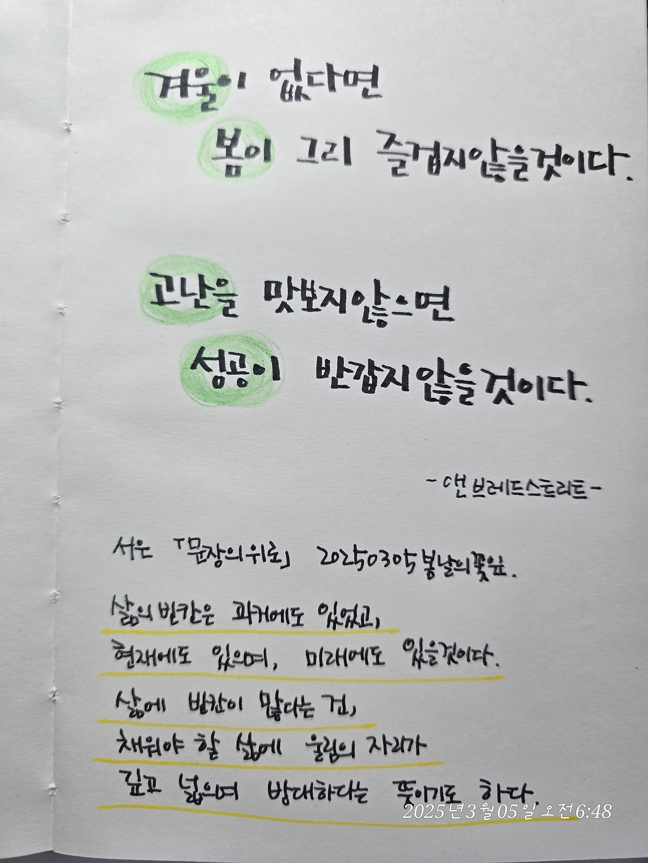 하지만 계절은 흐르고, 봄은 반드시 온다.