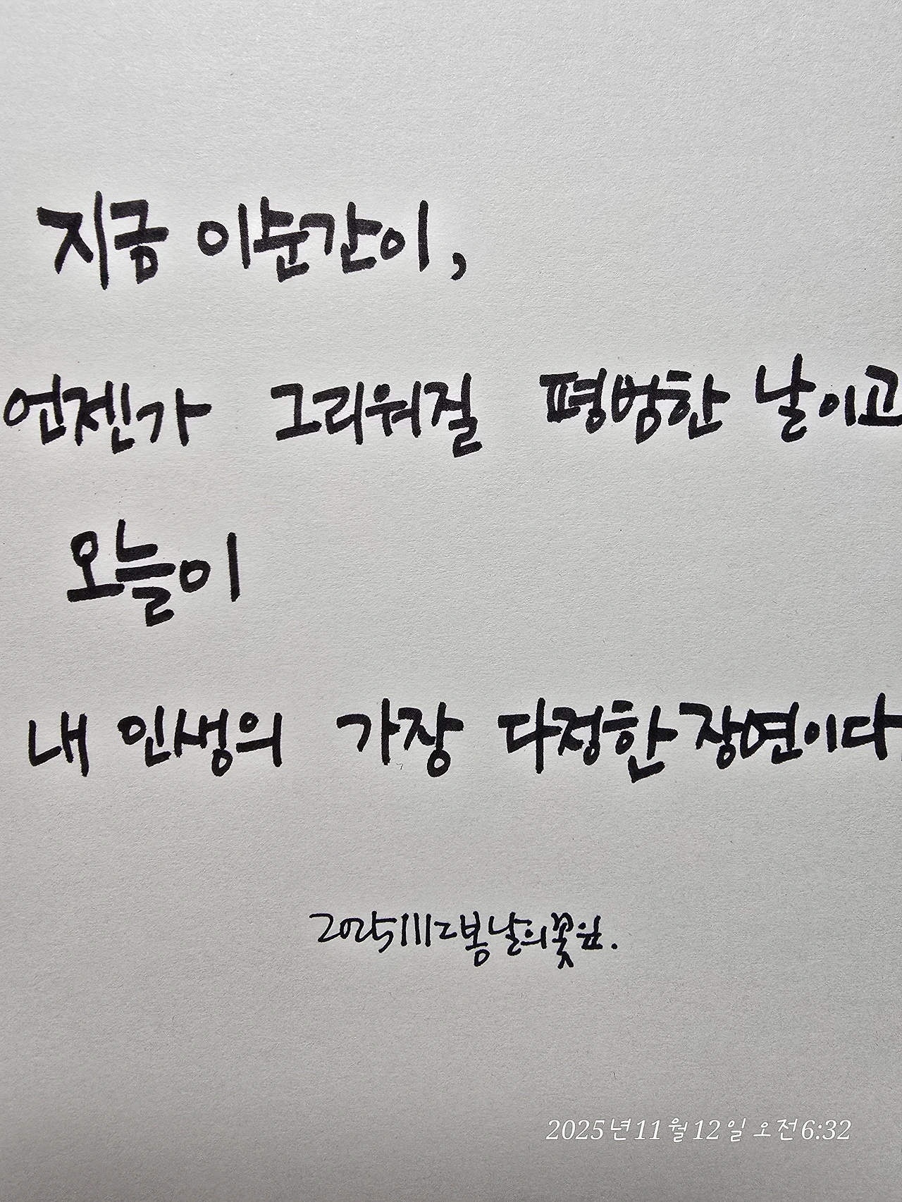 오늘이 내 인생의 또 다른 다정한 장면임을 잊지 않으려 한다.