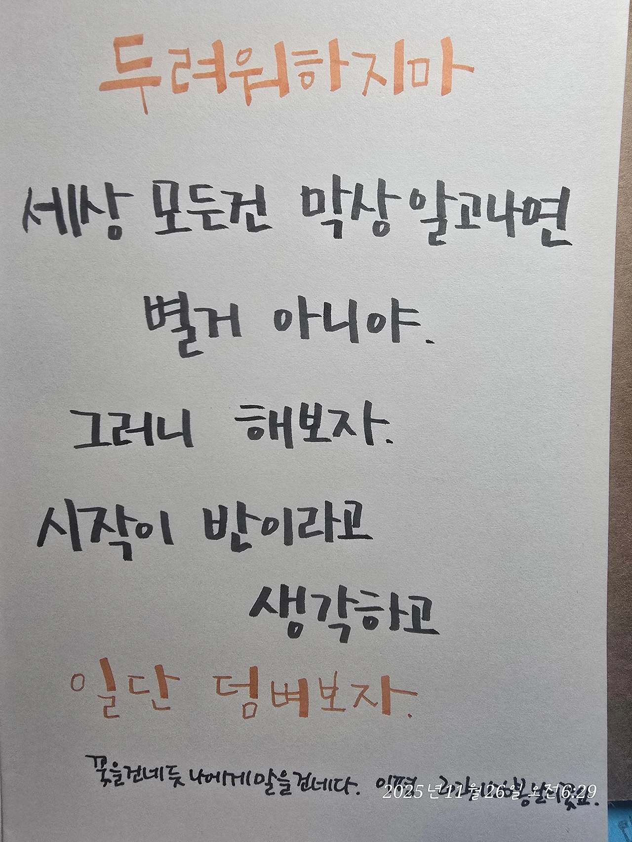 오늘 미루고 있던 일 중 ‘5분만 해볼 수 있는 일’ 하나 정해서 바로 시작하기.