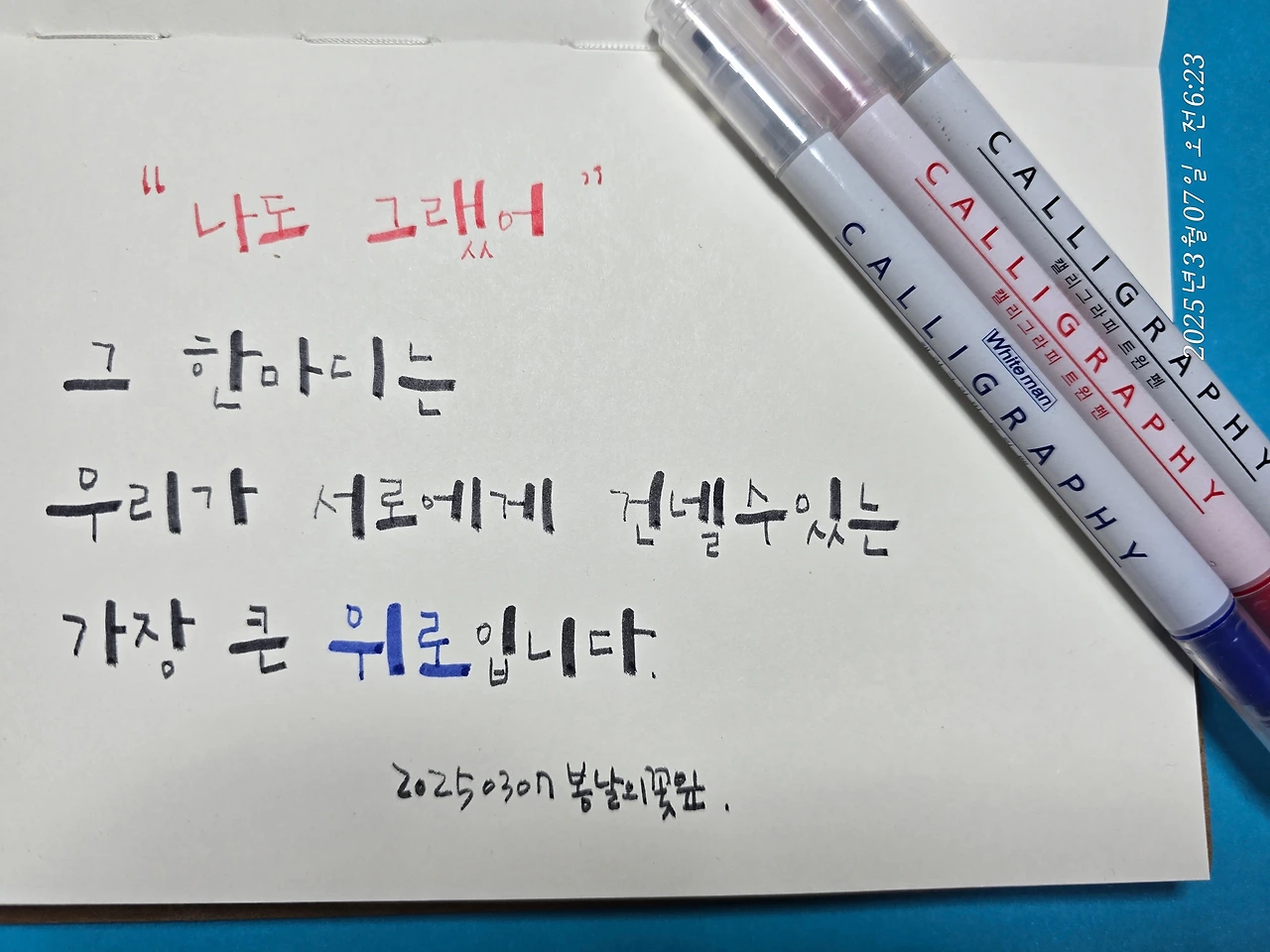 그 말이, 내가 나에게 주는 가장 따뜻한 위로가 되기를 바라면서.