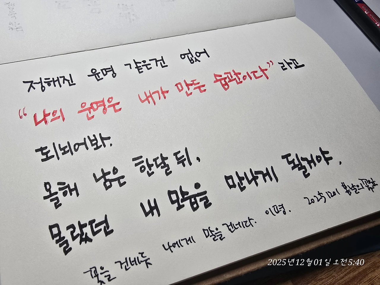 ‘나의 운명은 내가 만든 습관이다’라고 되뇌어봐.
