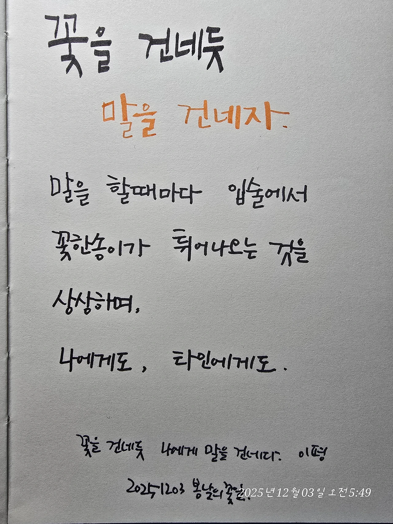 오늘 나와 타인에게 ‘꽃 같은 말’ 한 문장씩 건네보기.