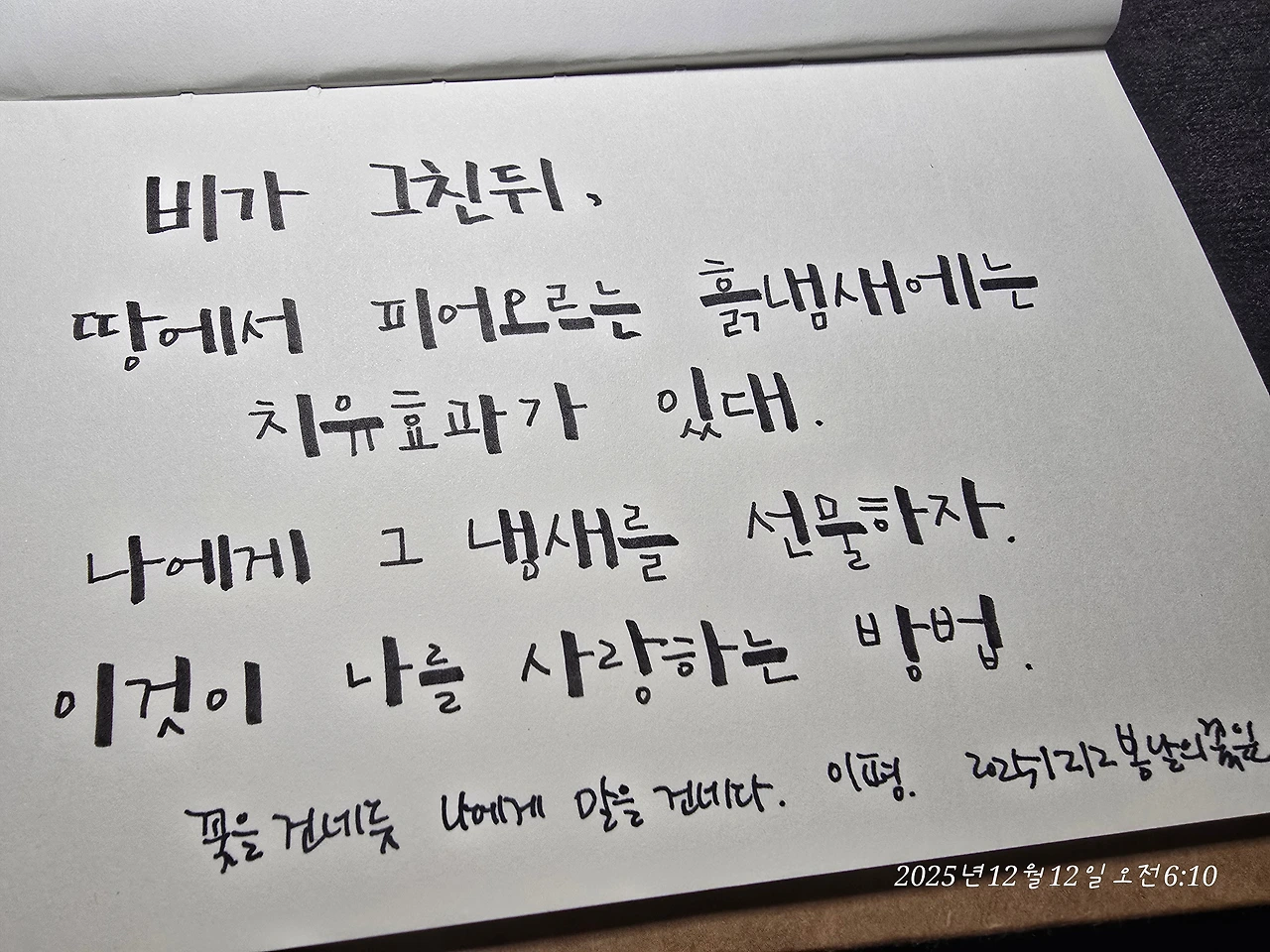 “비가 그친 뒤, 땅에서 피어오르는 흙냄새에는 치유 효과가 있대.