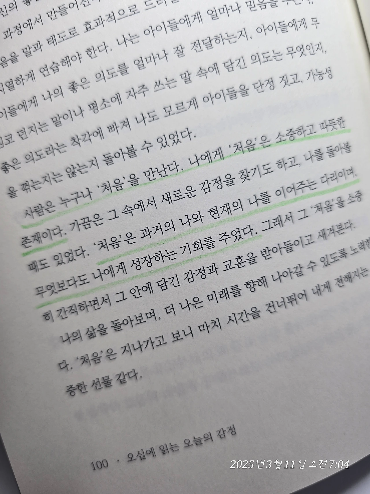 그래서 처음 을 소중히 간직하면서 그안에 담긴 감정과 교훈을 받아들이고 새겨본다