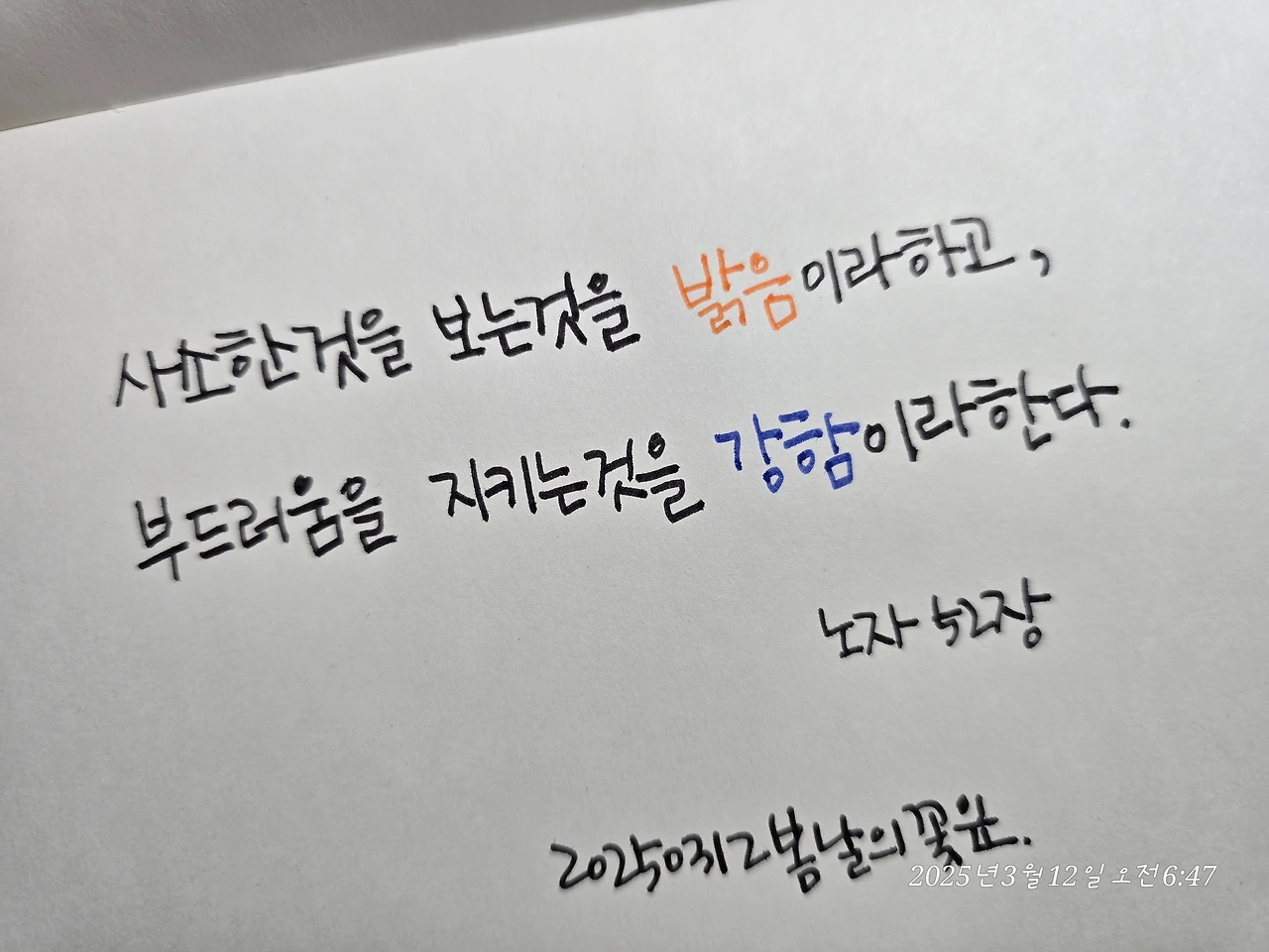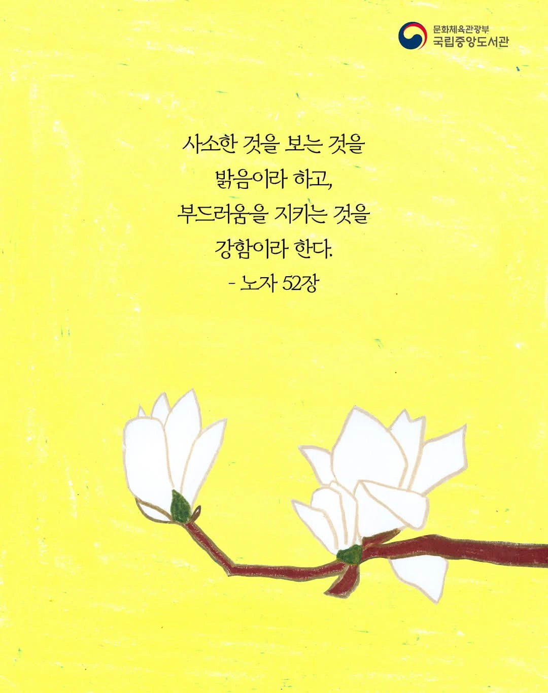 "사소한 것을 보는 것을 밝음이라 하고, 부드러움을 지키는 것을 강함이라 한다." (노자 52장)