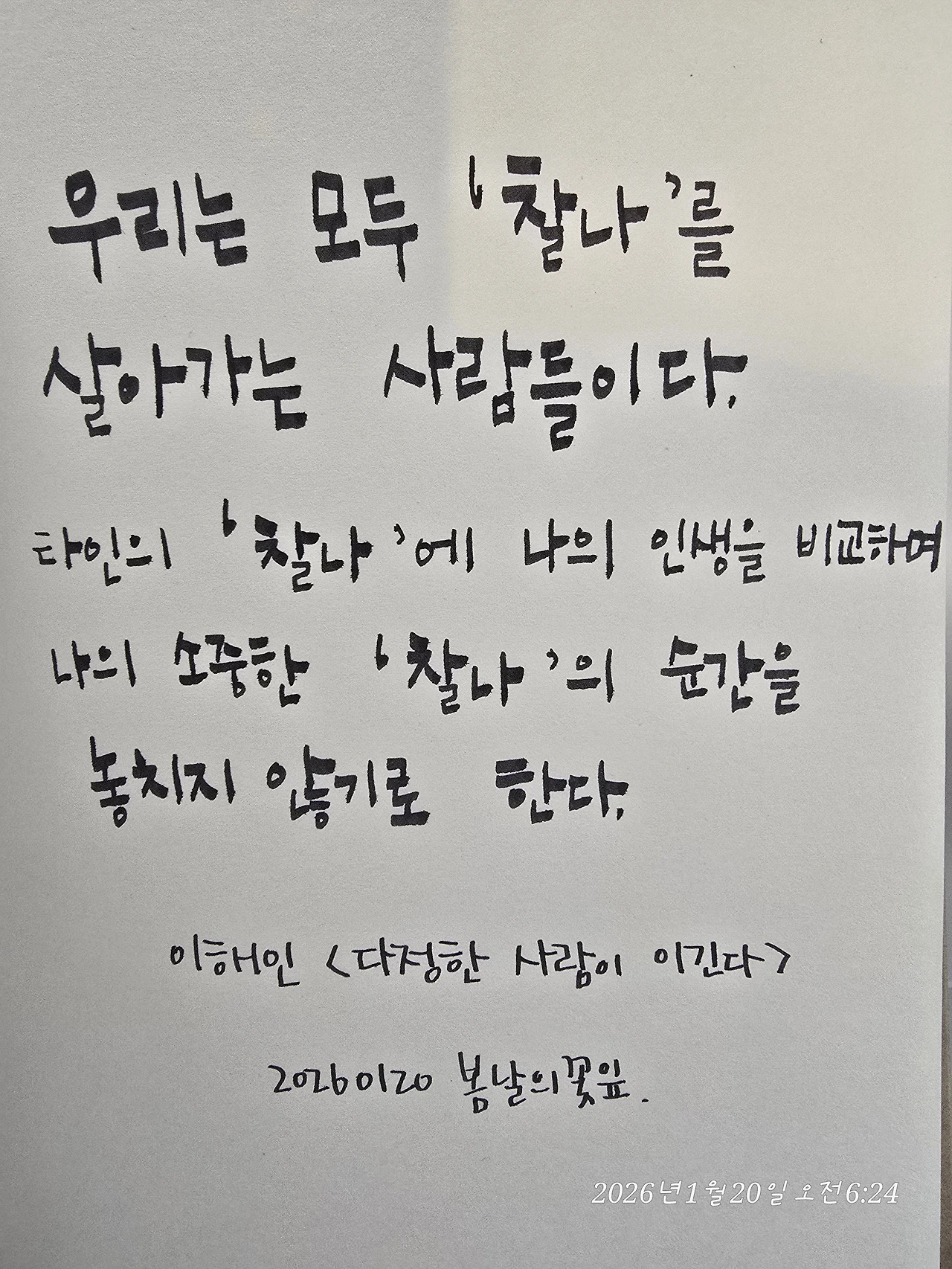 “괜찮아. 너도 너만의 찰나를 살고 있어.”
